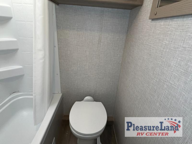 The largest bunk trailer in the E-Pro lineup will work perfectly for a family or friend group that enjoys their own sleeping space, plus more floor space with the dinette slide out that can sleep one to two. The bottom bunk even flips up so you can stow away your bikes, totes and such through the bike door for secure travels. There is exterior storage for more outdoor gear, and interior storage found throughout. The cook will love having a pantry and overhead cabinets for snacks, canned goods, dishes and more. After making a warm meal, the 12V refrigerator can hold the leftovers. The private toilet and shower/tub room gives you privacy and a place to get cleaned up after a fun day outdoors.