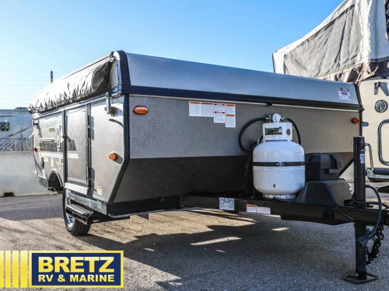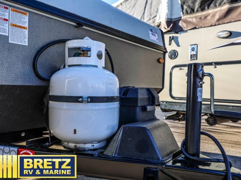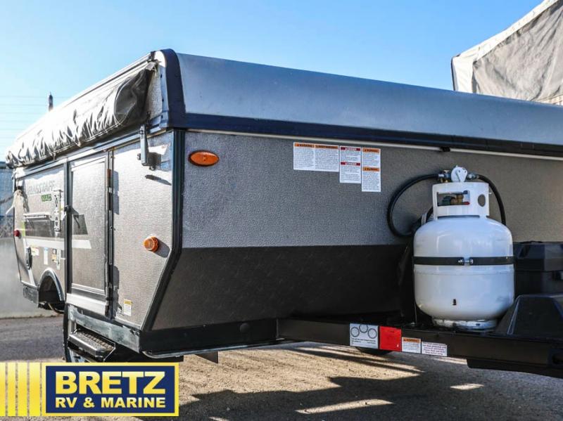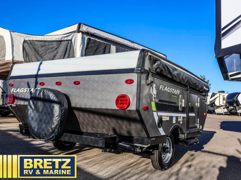 Retire the family tent for one of these Forest River Flagstaff MAC Limited Series folding pop-up campers! They might be light on features, but they don't lack in comfort or quality. Each model comes with a heated mattress on the bunk ends, wood look flooring, and a flip-down galley with storage for dishes and snacks. The carry-out range is super handy to grill juicy burgers while breathing in fresh air under an awning to keep you protected rain or shine.