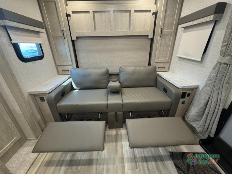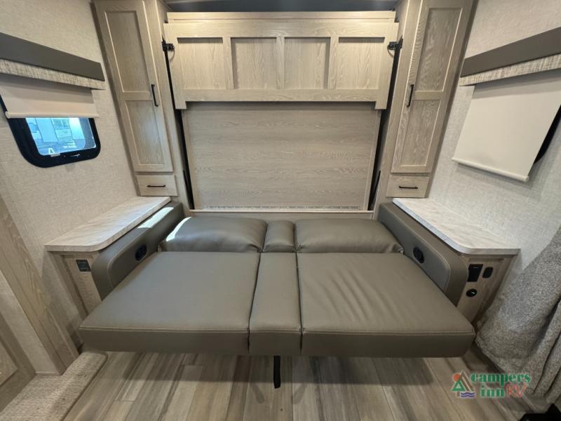 Space-Saving Murphy Bed Design: Maximize your living space with a versatile front murphy bed that converts from a plush queen-size sleeper to a comfortable sofa during the day—perfect for relaxing or entertaining.