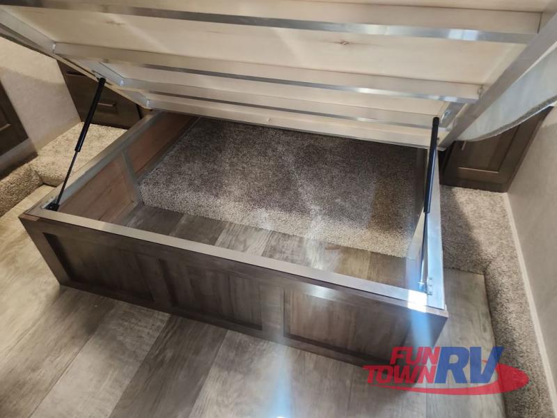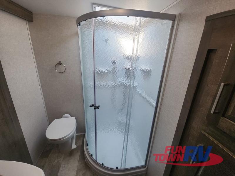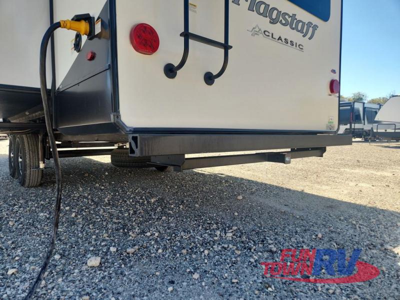 With any Flagstaff Super Lite fifth wheel by Forest River the towing features include the LCI turning point pin box hitch for easy maneuvering, the TST tire pressure monitor system with a monitor providing safety on the road, Easy Lube axles and Nev-R adjust brakes, and rear observation camera prep. Each is built with 6 sided aluminum framed walls, floor and roof, a radius roof with a vaulted interior ceiling, thermostatically controlled heated holding tanks and an enclosed underbelly allowing you to travel during any season. The interior offers a Water-Pur filtration system, hidden hinge cabinet doors, a porcelain residential-style bowl toilet, a headboard and residential bedding for style and comfort and so much more! Choose a lightweight, towable by half-ton or three-quarter ton pickup truck Flagstaff Super Lite today!