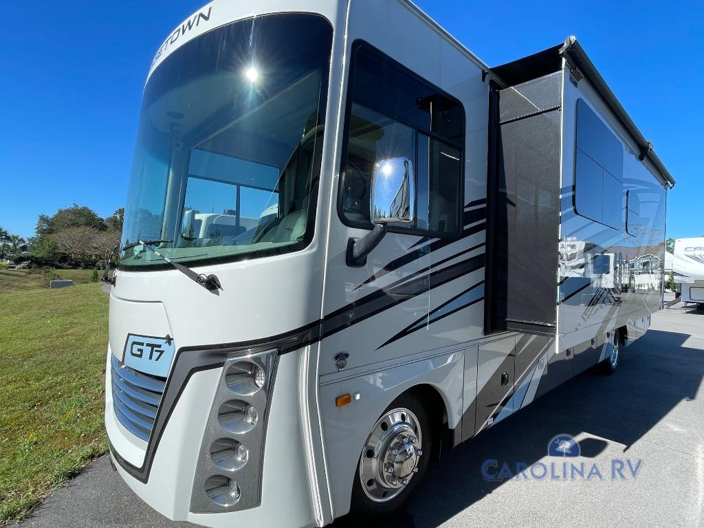 Start exploring your favorite destinations with one of these Forest River Georgetown 7 Series Class A gas motorhomes! Their solid surface kitchen countertops and residential stainless steel appliance package will have you feeling right at home. The Arctic package lets you travel farther into the year, and the automatic hydraulic leveling jacks will keep your unit leveled where ever you set up. The construction consists of a multi-layered laminated roof system that includes tubular aluminum framing, a crowned fiberglass roof, and block foam insulation. The vacuum-bond laminated sidewalls not only have a gelcoat fiberglass exterior and tubular aluminum framing, but also EGS metal backers to increase the support for the interior cabinetry. Come find your favorite model today!