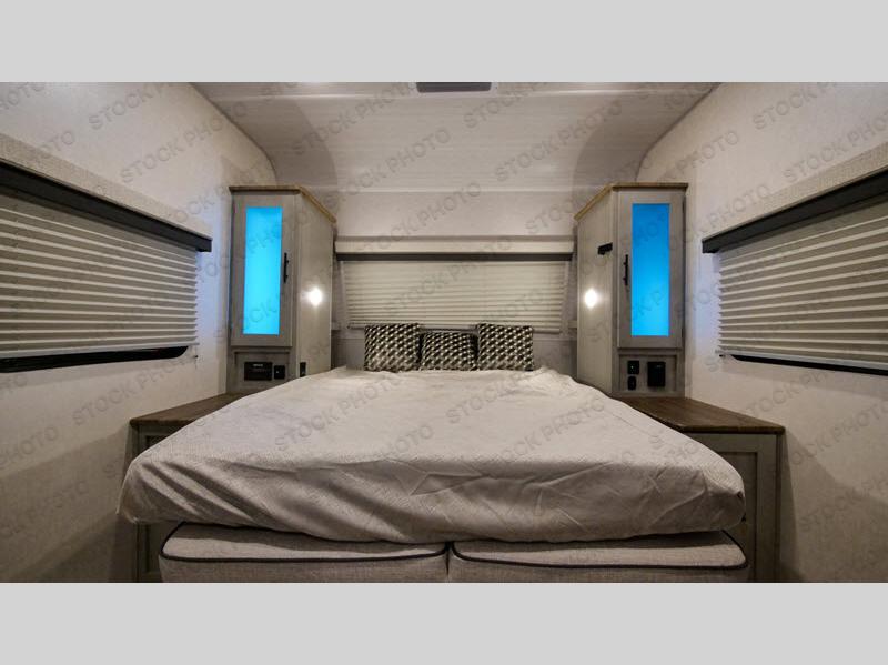 With any IBEX travel trailer or toy hauler by Forest River, the interior offers stainless steel appliances for style, seamless countertops for durability and easy care, and a largest-in-class refrigerator for more cold storage. The Azdel construction and PVC roof will help extend the life of your unit, and the all terrain tires and increased ground clearance means you can go more places. A JBL wireless Bluetooth audio system also comes standard so you can listen to your favorite tunes, along with Rhino-Rack RTV tracks to keep your gear secure!