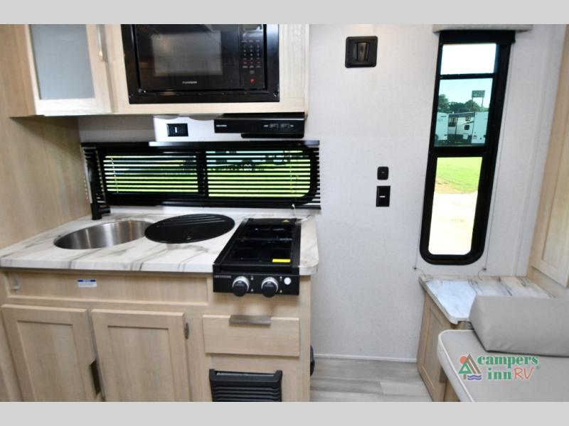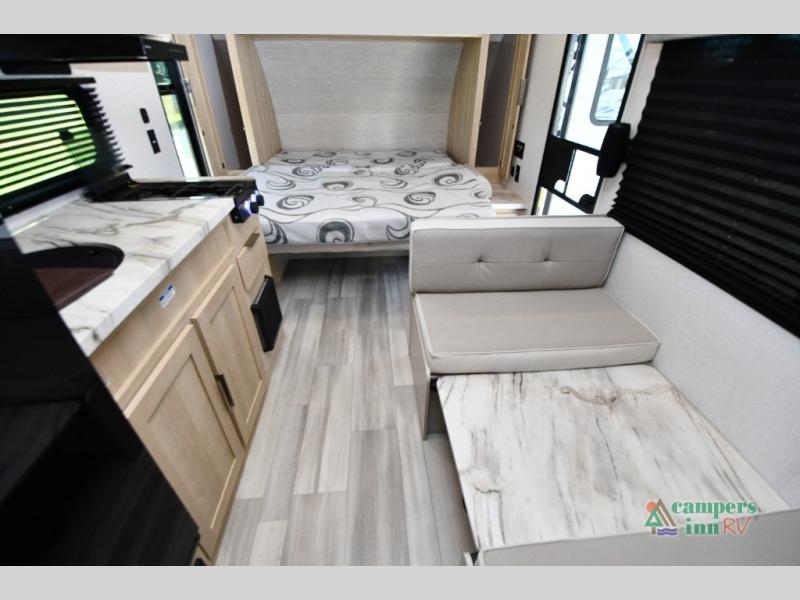The Used 2023 Forest River Salem FSX 179DBK is a compact, adventure-ready travel trailer built for first-time campers and seasoned RVers alike. Its thoughtful layout makes every trip enjoyable, from weekend getaways to longer excursions. With a front Murphy bed, double-size bunk beds with storage, and a booth dinette, this trailer offers flexible sleeping arrangements for family or friends. The fully equipped indoor kitchen and outdoor kitchen space make meal prep simple, while an outside shower and pass-through storage ensure convenience at every stop.