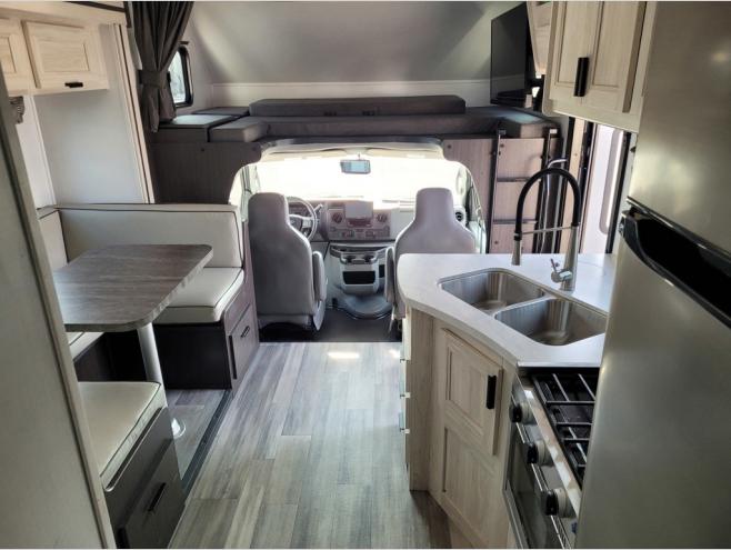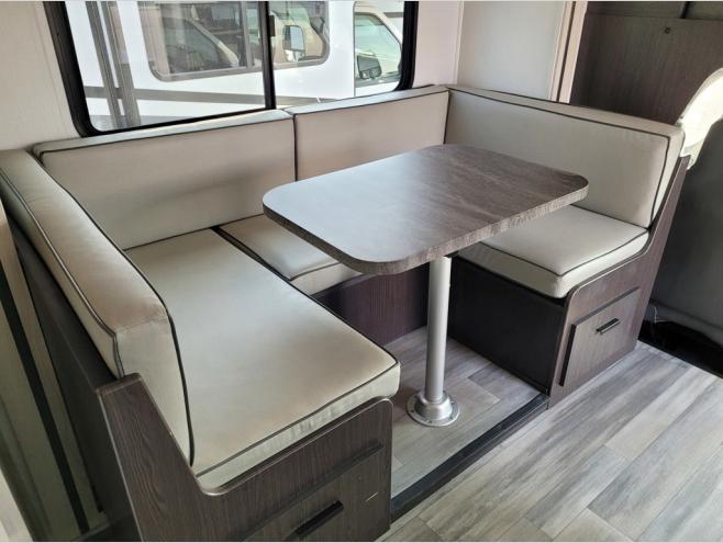 With any Sunseeker Classic Class C gas motorhome by Forest River, you will enjoy more features and quality construction at a great value! Each model comes standard with a crowned, laminated fiberglass roof and 2" thick gel coat sidewalls for maximum durability. The Winegard Air 360+ digital antenna is your all-in-one solution for your internet, TV, and FM signal needs, and you have Gateway 4G Wi-Fi capability too. The exterior has an outside shower, heated/enclosed tanks, Rotocast storage compartments, an electric awning with LED lights, and awning toppers for the slide outs. Each drive will be made easy thanks to a 9" touchscreen CarPlay/Android radio with USB and Bluetooth, a color backup camera with rearview monitor, sideview cameras, and Ultraleather seating. You'll also love the black out roller shades, upgraded appliances, and the 7' ceiling height for added space to relax!