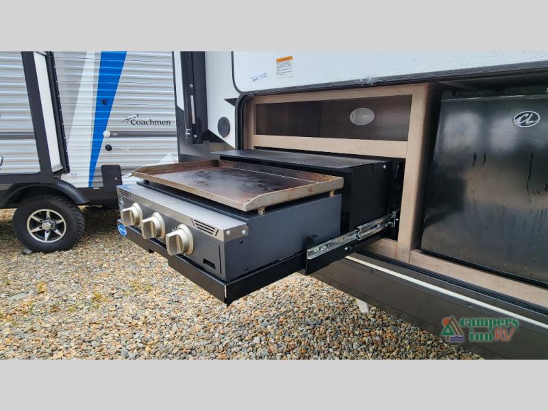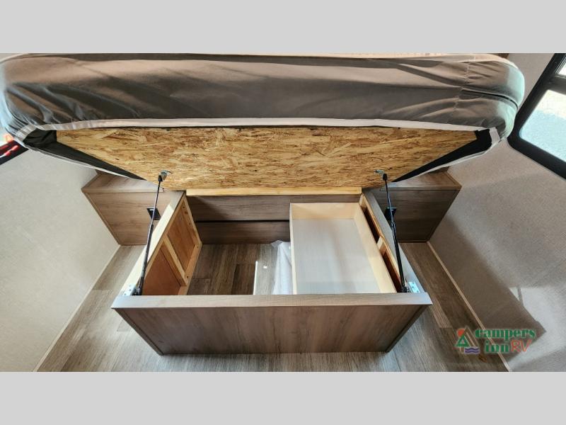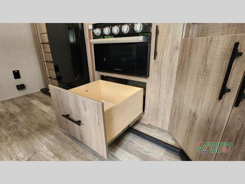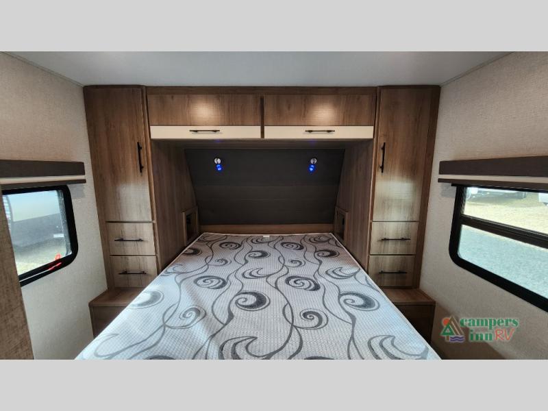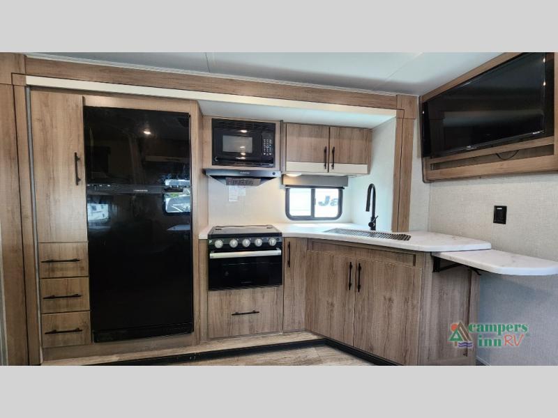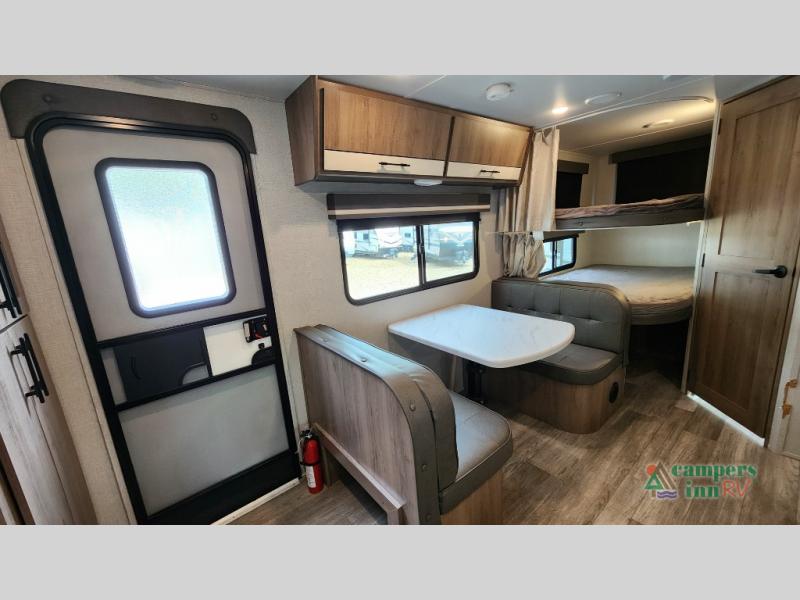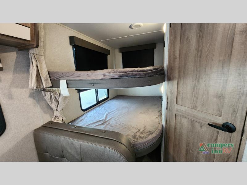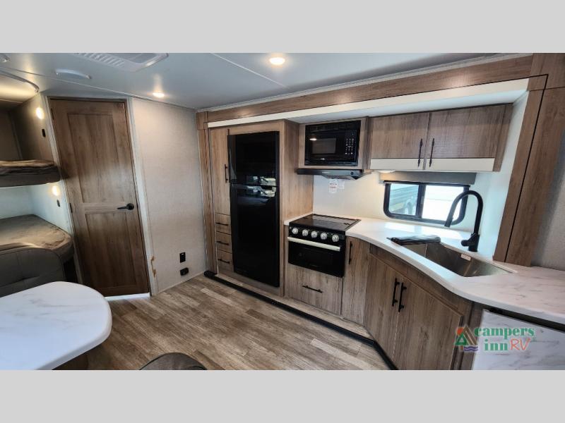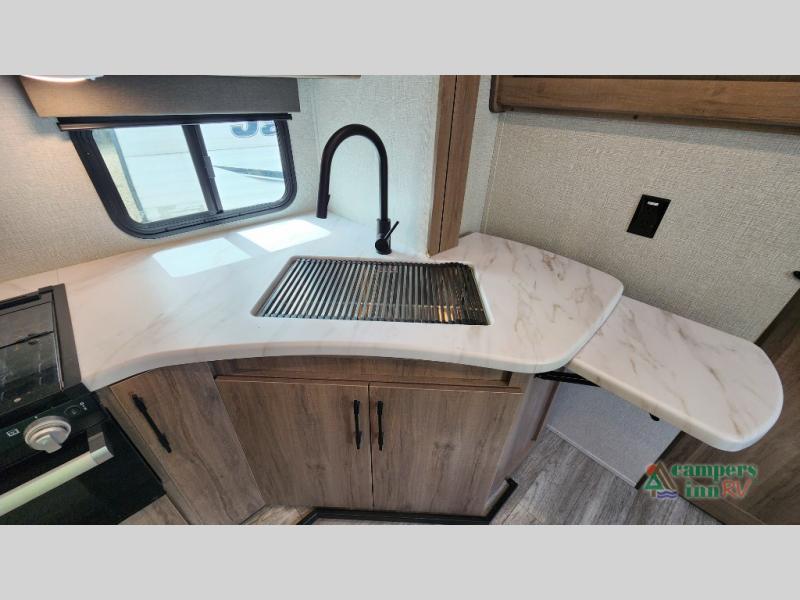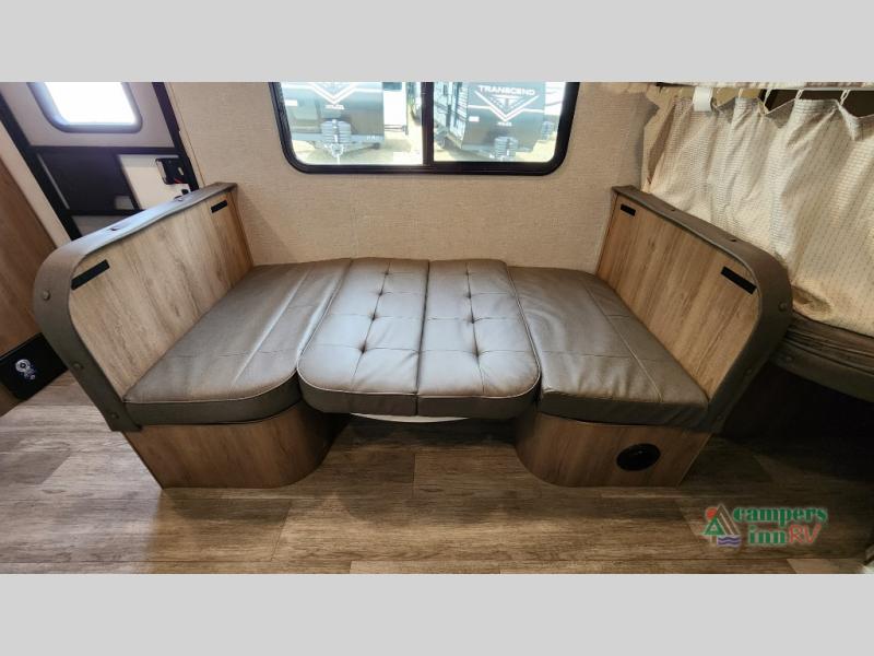 It won't be long before you have another trip with this Imagine XLS travel trailer on the agenda! You will find a walk-around queen-size bed up front in the private bedroom, and right next to the entry door is a coat closet so that you can hang up your coats when you come inside. The booth dinette is right next to the window, so you can look out at your surroundings while you enjoy breakfast. The double-size bunks have some privacy curtains, and the bunks are right next to the full bathroom for easy access in the middle of the night. The kitchen rests on the single slide which gives you more space to get dinner in the oven, and you can have some more prep space by using the flip-up countertop extension.