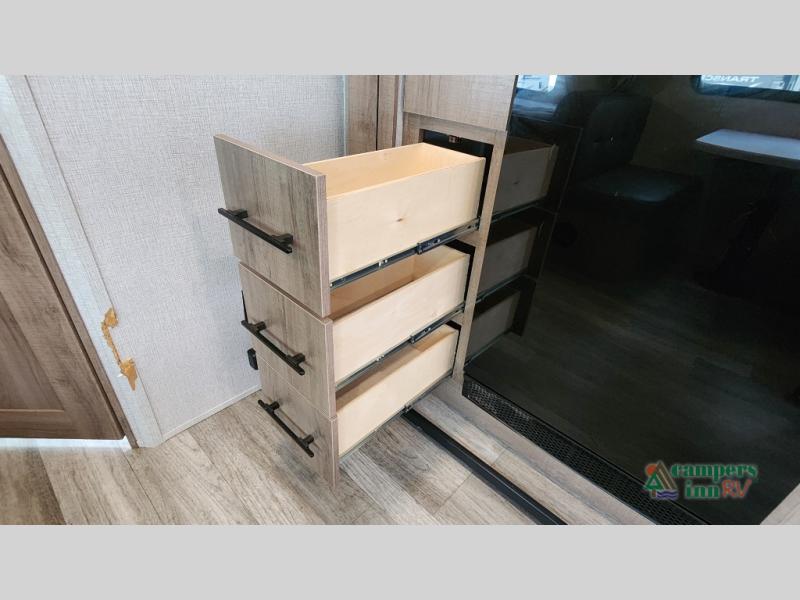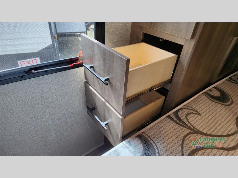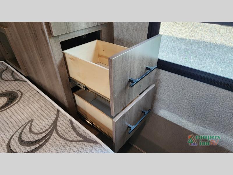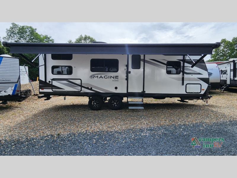Let your imagination run wild with the possibilities that the Grand Design Imagine XLS travel trailer can provide! The Imagine XLS has been built with oversized tank capacities, an extra-large 2" fresh water drain valve, a ducted A/C system, a power tongue jack, and a heated and enclosed underbelly with suspended tanks. There is a designated heat duct to the subfloor and a residential ductless heating system throughout. For outdoor adventures, the electric awning with LED lights will enable you to stay protected, and the exterior speakers make any time outside a party. You will also love the XLS Solar Package that comes with a 165W roof mounted solar panel, a 25 Amp charge controller, a 12V 10 cu. ft. refrigerator, and roof mounted quick connect plugs!