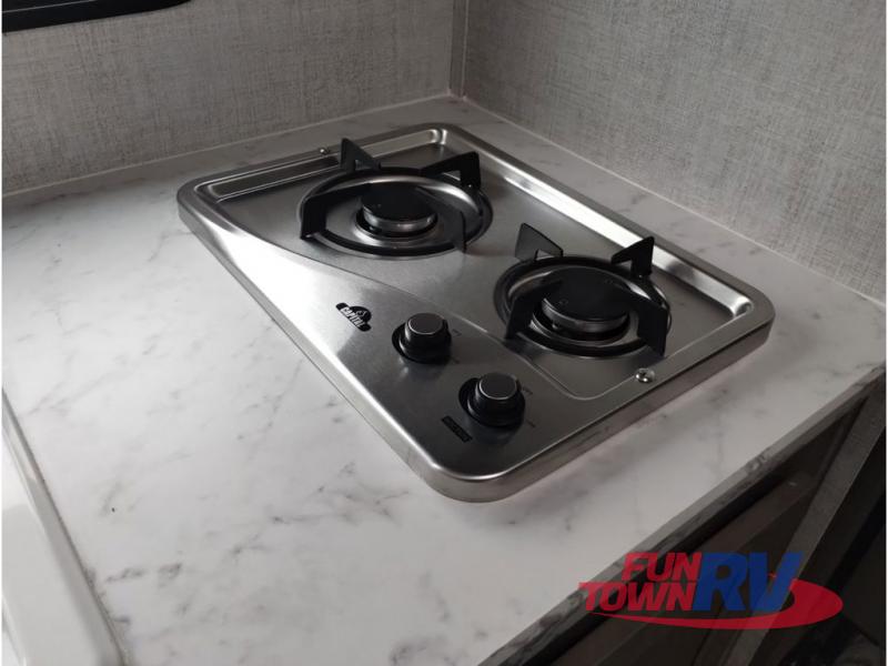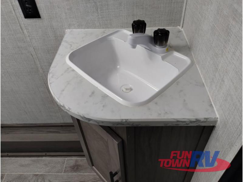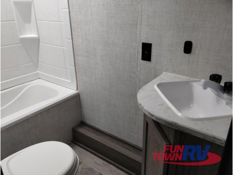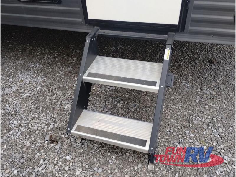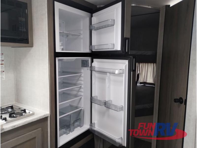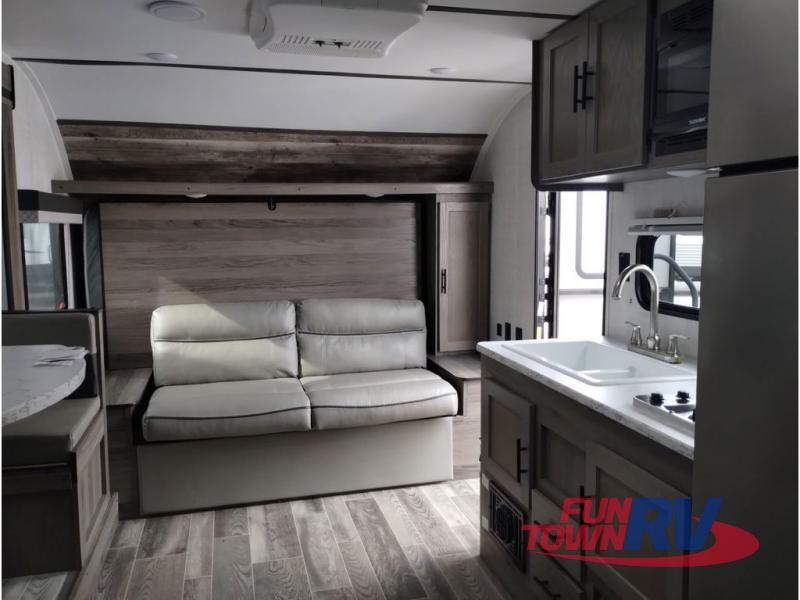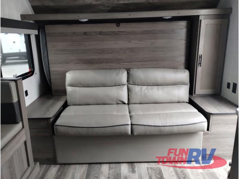 If you're looking for a travel trailer with more space to relax and sleep more friends, look no further than this Kingsport Super Lite. The double-size bunks will be perfect for your guests and you'll have the front queen-size Murphy bed all to yourselves. In the morning, you can fold up the Murphy bed to relax on the 60" sofa, then freshen up in the full bath. Your meals can be made on the two burner cooktop or in the microwave oven, plus this model includes an outside 1/2 kitchen you are sure to love.
