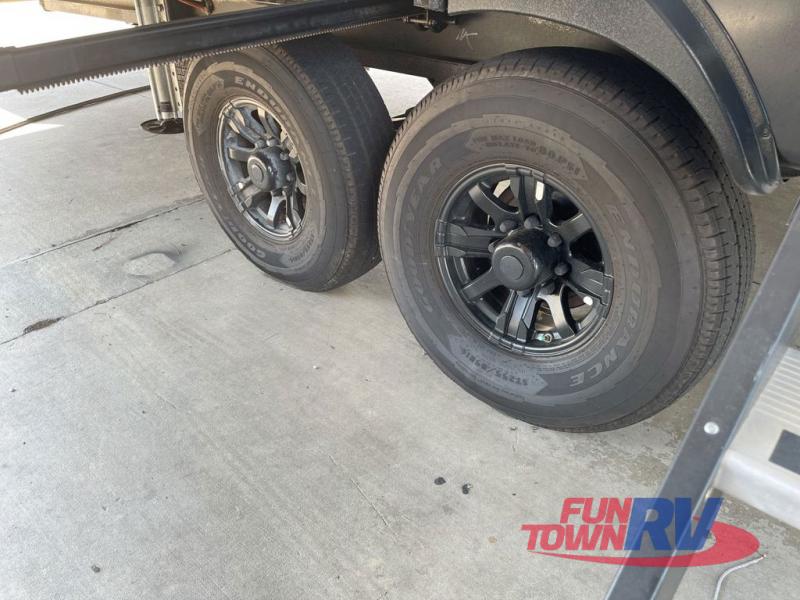 Each Big Country fifth wheel by Heartland is constructed with double layer Azdel composite panels, a 12" powder coated steel I-beam frame, and TPO roofing material for added durability. You will have smooth trips to the campground thanks to the upgraded Rota Flex pin box and MORryde 3000 suspension with leaf springs, a wet bold kit, and shock absorbers. The innovative storage design includes three points of access for easy loading and unloading, plus there is entertainment prep outside and insulated slam style cargo doors with magnetic hold backs for convenience. The interior is packed with luxury touches, like the stained hardwood cabinetry, stainless steel appliances, master bedroom storage, a designer island, and the list goes on!