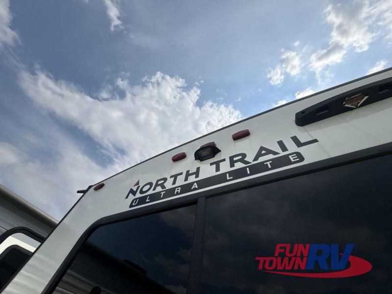 When you choose a North Trail travel trailer by Heartland you are choosing comfort, convenience, and quality craftsmanship at its best. The block foam brick insulation, enclosed and heated underbelly, plus Weather Guard thermal protection mean you can camp all year around. Each model features a Wide Trax suspension for a smooth ride, and the backup camera prep and solar prep make camping that much easier if you choose those options. Some of the other exterior features you will appreciate are the outside shower, the power stabilizer jacks and power tongue jack, and the outside speakers to keep the party going. Head inside to find stainless steel appliances, oversized windows, and premium flooring that is tear, slip, mold, mildew and cold crack resistant! You can't beat a North Trail travel trailer. Choose your favorite floorplan today!