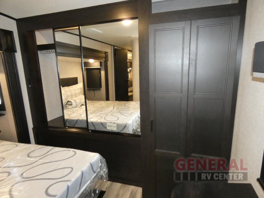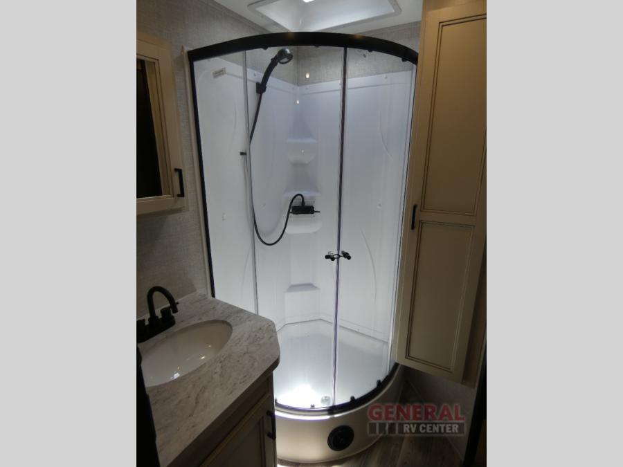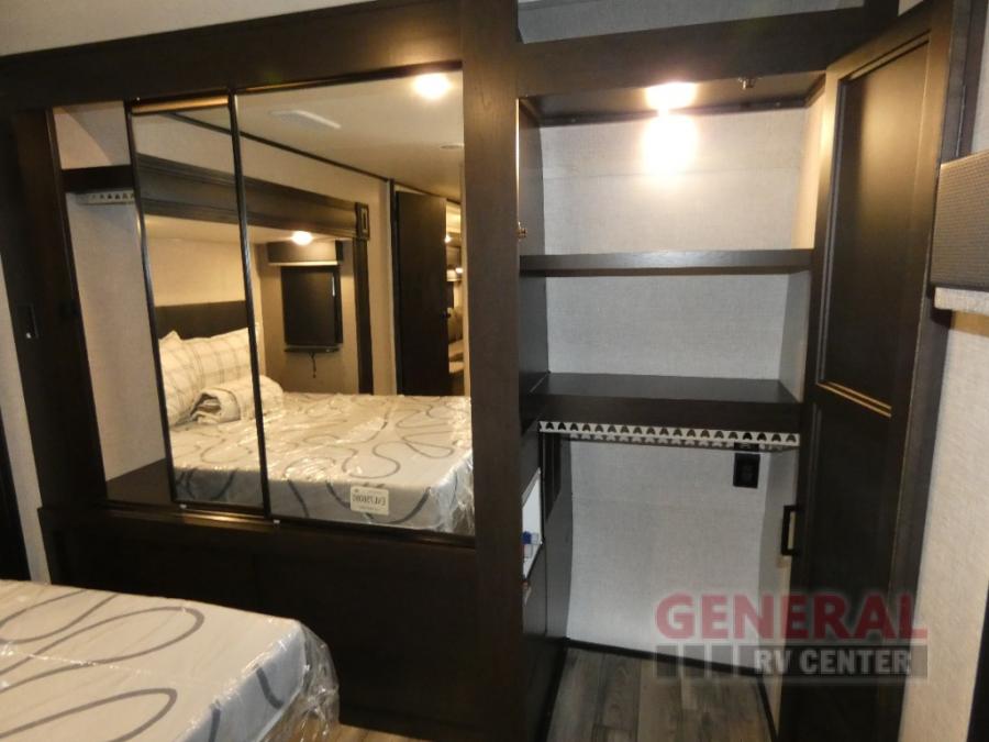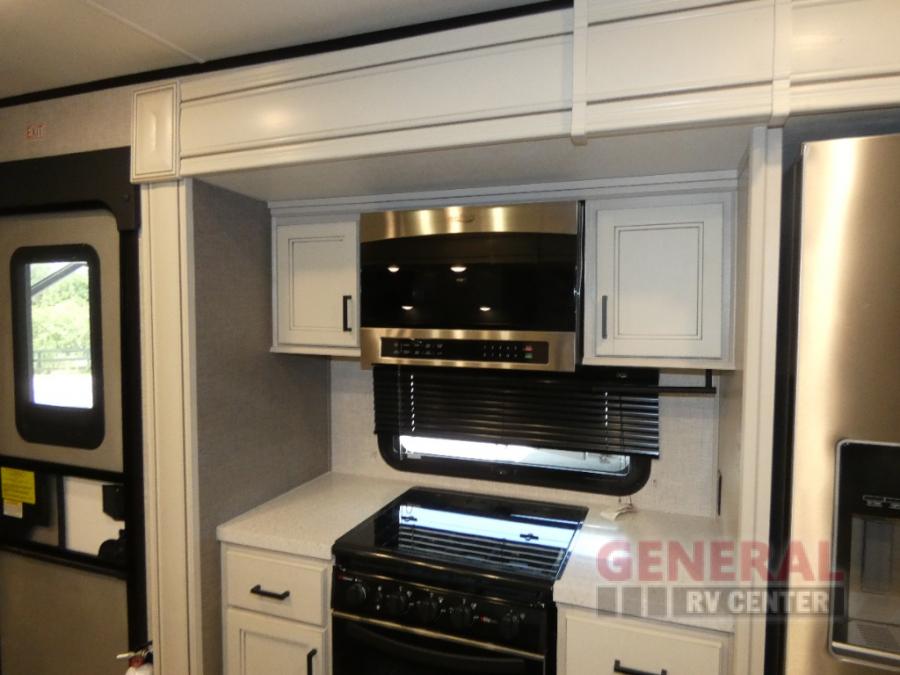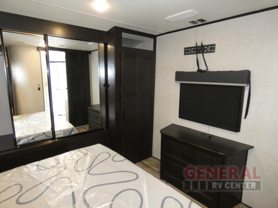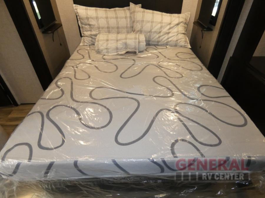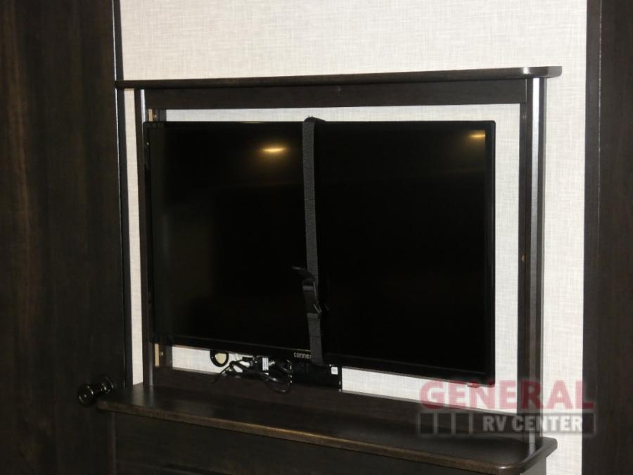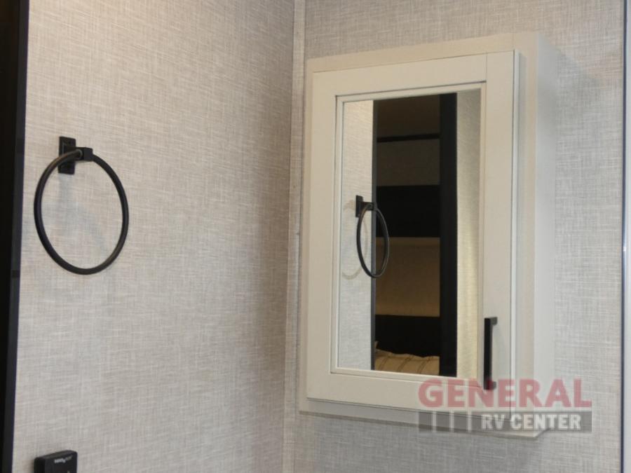 Invite your friends to join you on a road trip thanks to the private bunkhouse with two bunks, a dinette and a bench seat as well as a hutch and wardrobe for their things. You will have your own privacy in the front bedroom with a queen bed slide, a dresser with a window above, a mirrored wardrobe for your clothes and a wardrobe prepped for a washer/dryer. You will also appreciate easy access to the double entry bath which includes a radius shower and linen storage. The cook can make meals with full amenities including a kitchen island and a pantry, and everyone can eat at the U-Lounge with two tables. You will also enjoy watching a show on the 39" LED HDTV with a fireplace below. And the outside kitchen, shower and storage will all come in handy as well.