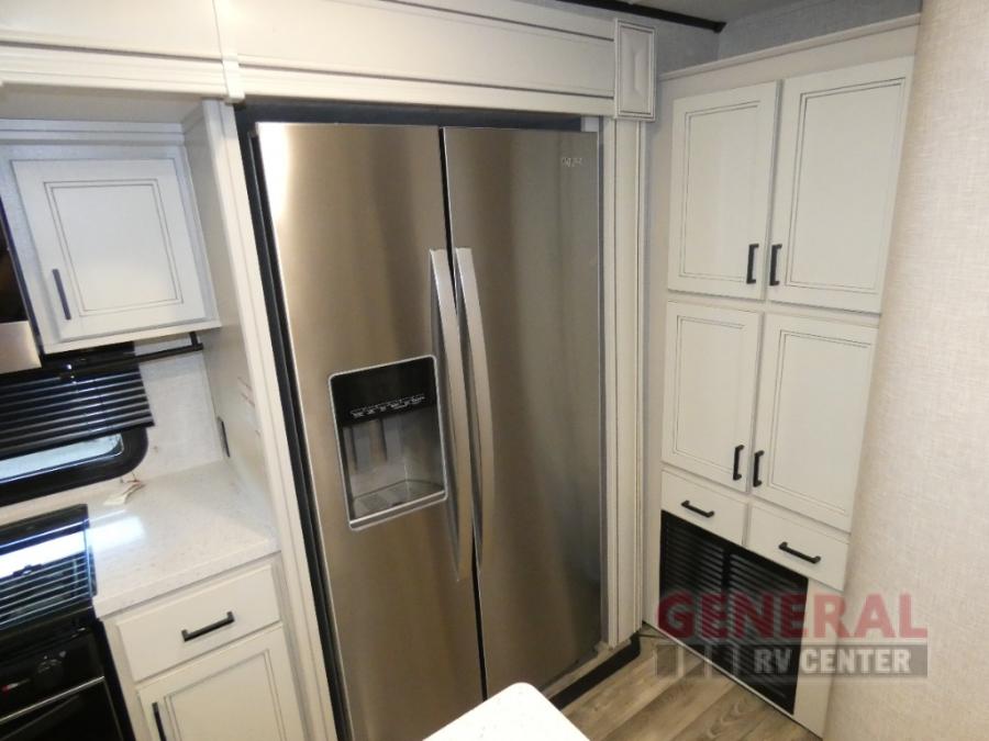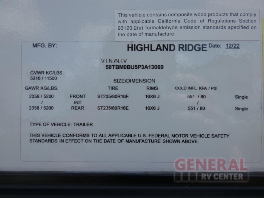 With any Highland Ridge Open Range travel trailer, the 100" wide body frame and the ACCU-SLIDE slide system with 42" deep 4-corner compression offer more interior space. Inside, you will also enjoy residential vinyl flooring, hardwood cabinet doors, and two air conditioners with quiet residential return air. The exterior equipment includes Equa-Flex axle suspension, self-adjusting electric brakes, and the Norco 5.1 stabilizer system with BAL lock arms. You will also enjoy the Four Season package that offers ducted heat to underbelly with cold air return, an enclosed exterior docking station, a heated and enclosed underbelly, and a high performance furnace to mention a few highlights.