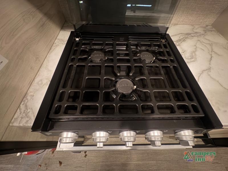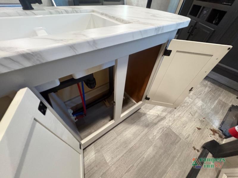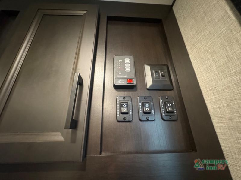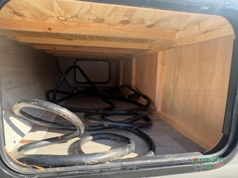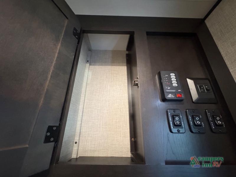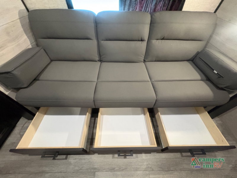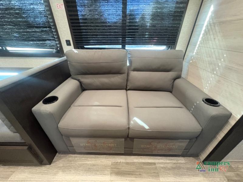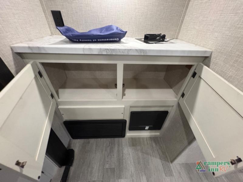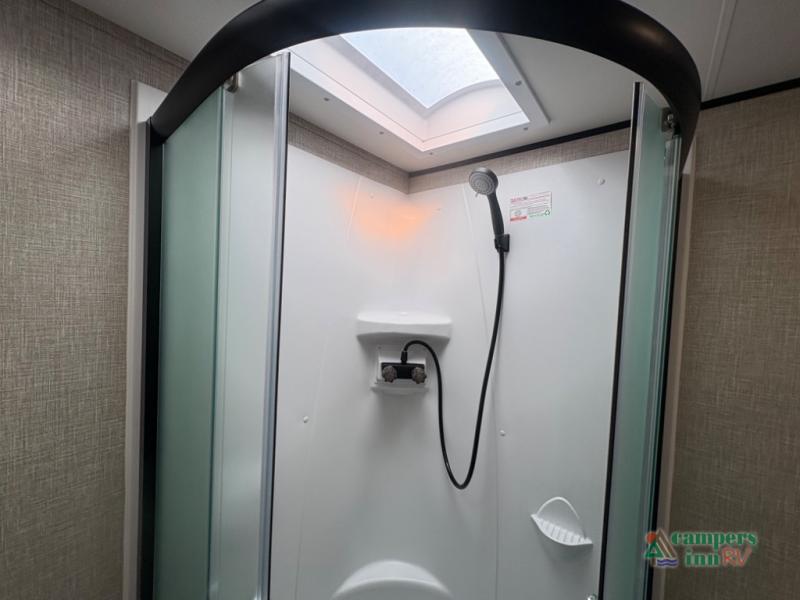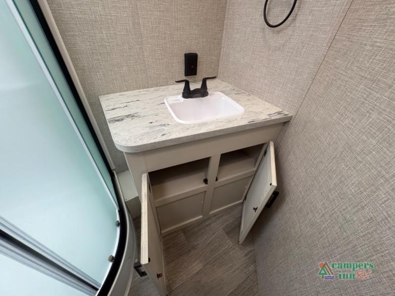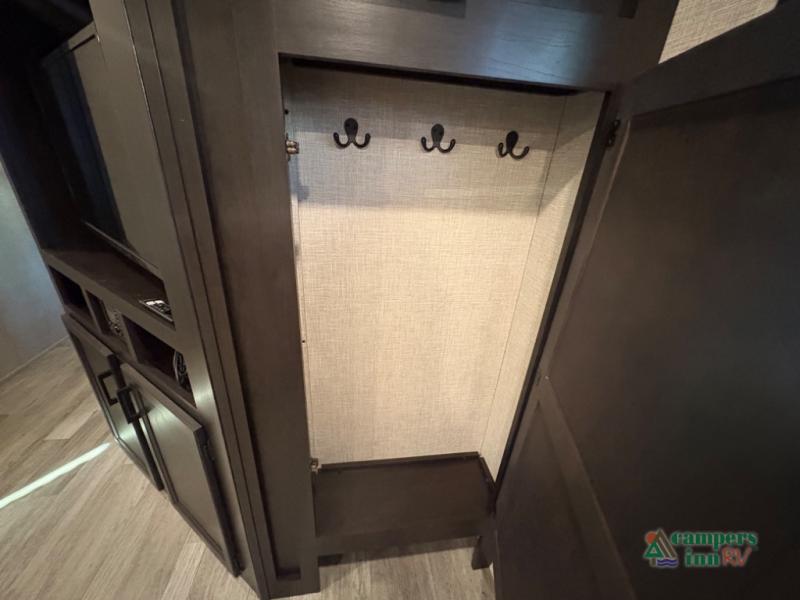 Take the whole crew with you in this travel trailer! The rear private bunkhouse is big enough to house all of the kiddos with a set of 38" x 73" bunk beds, a 27" x 74" bunk above a booth dinette, and an entertainment center. You will have your own privacy with the front private bedroom with a queen bed that has wardrobes on either side for your clothes. Keep everyone squeaky clean with the radius shower in the full bathroom, and their bellies full with the fully equipped kitchen which has a three burner cooktop, kitchen island, hutch, and a gas/electric refrigerator. Enjoy your meals and games at the booth dinette then transform it into an extra sleeping space, plus you can transform the jackknife sofa into one too!