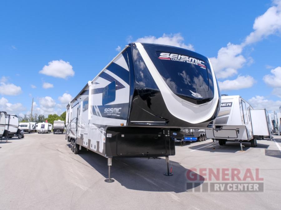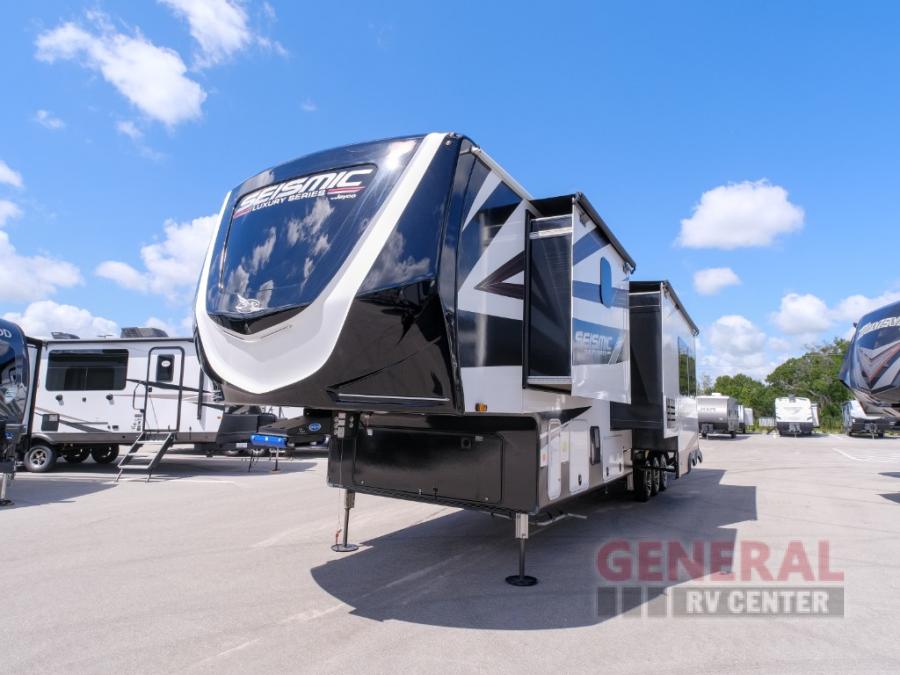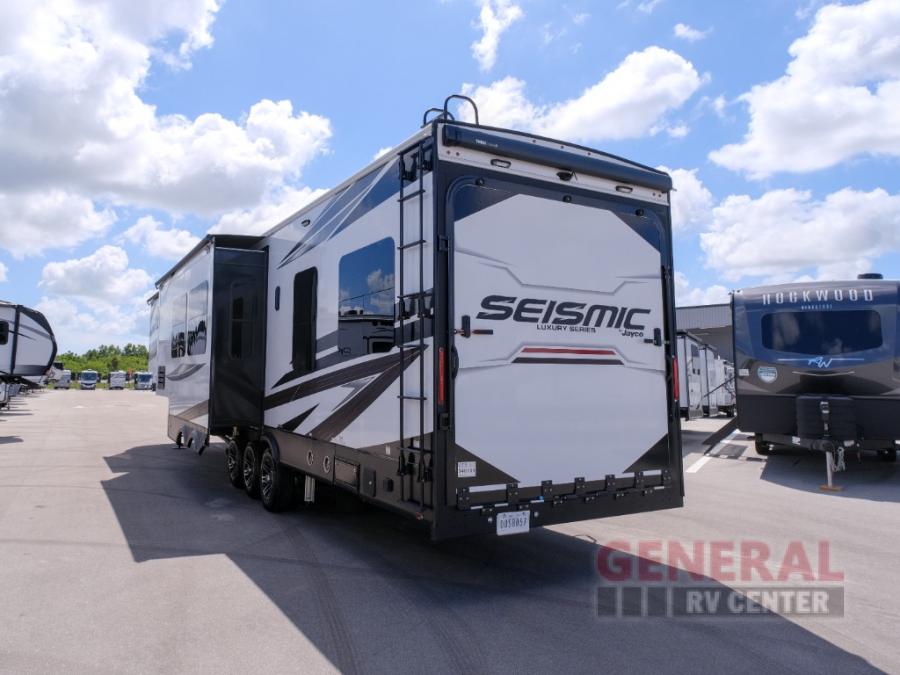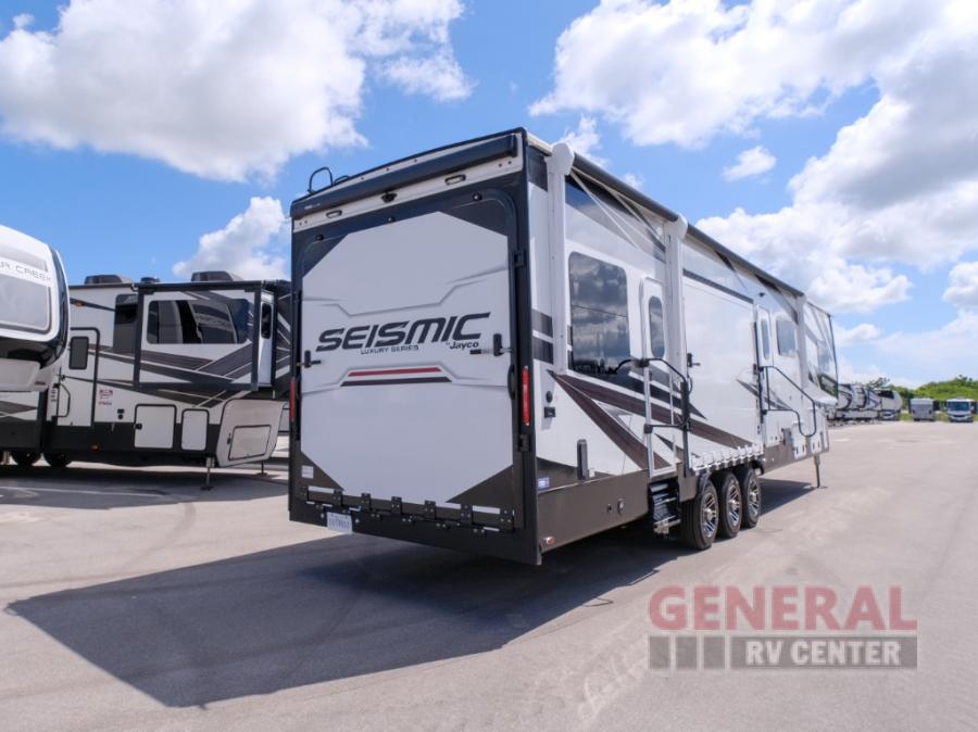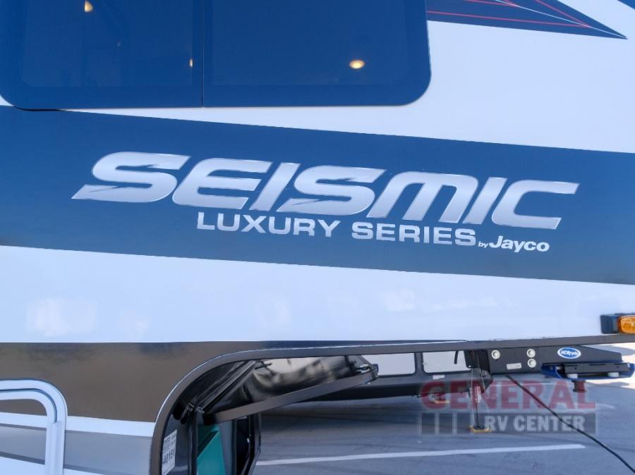 With any Seismic Luxury Series fifth wheel toy hauler by Jayco, you will enjoy the versatile garage that offers a rear ramp door and patio with anti-slip, non-skid flooring, a Tuff-ply, rubberized garage floor liner, and the Industry's first 2" block-foam fully insulated garage floor. The mandatory 5 Star Handing package gives you MORryde CRE-3000 rubberized suspension, Dexter axles with Nev-R-Adjust brakes, E-Z Lube hubs and 4,000 lb. leaf springs, and a MORryde pin box and more. More standout features include the Tire Pressure Monitoring system, the wireless remote control system which includes Bluetooth wireless interior controls, the fresh water drinking system, and the list goes on and on! Choose a Seismic Luxury Series because there isn't anything better!