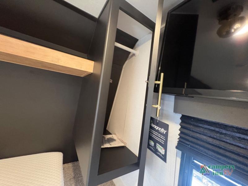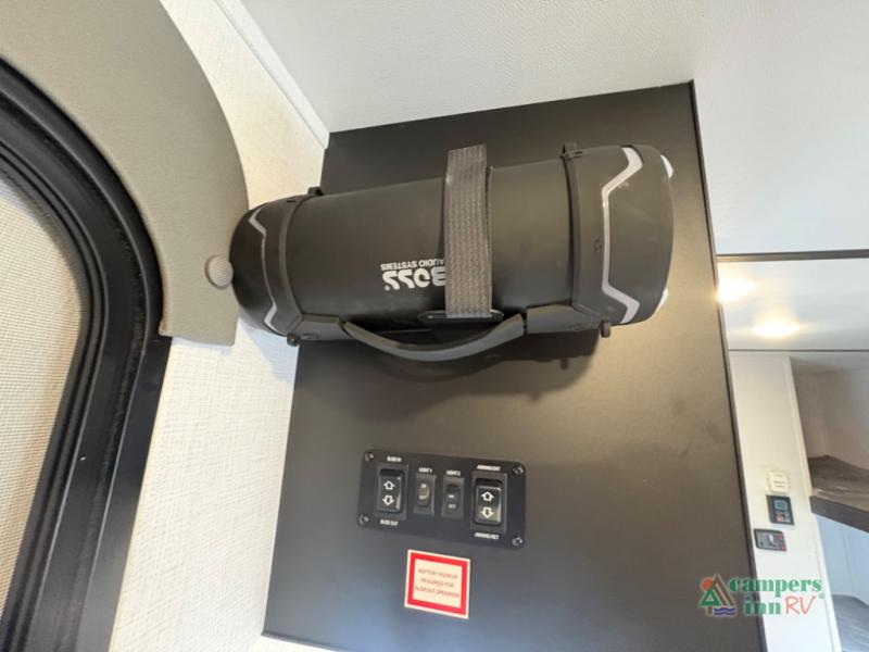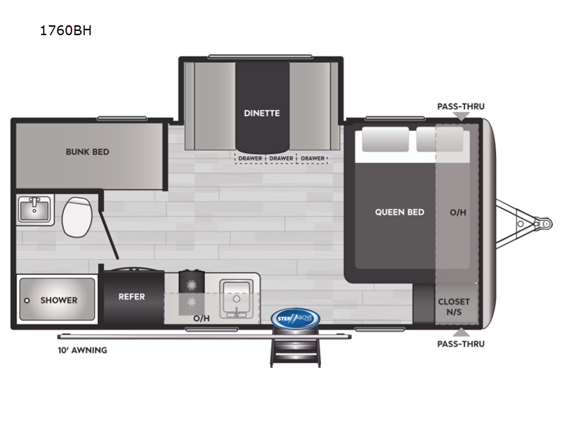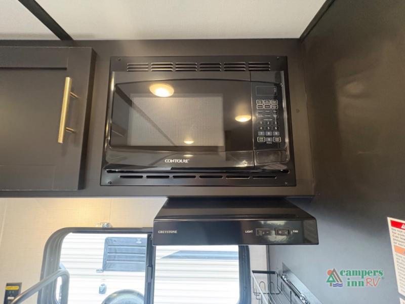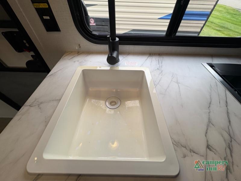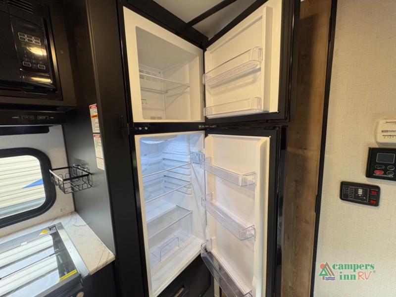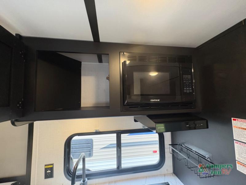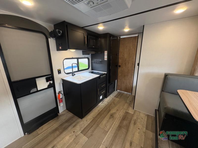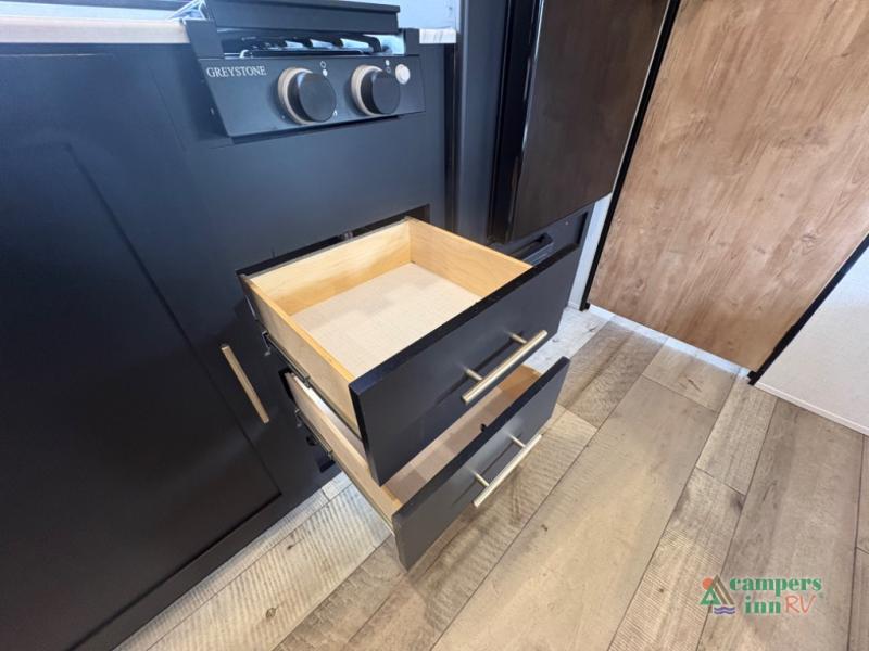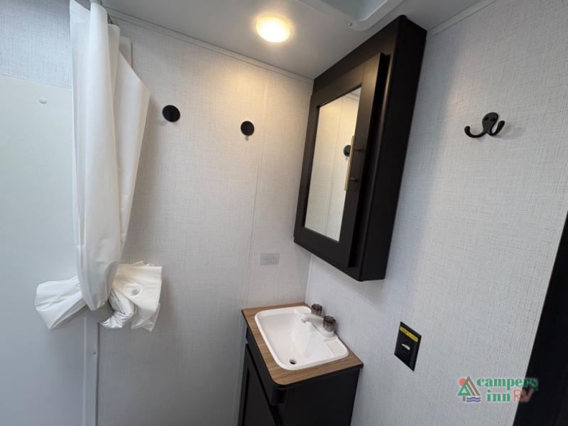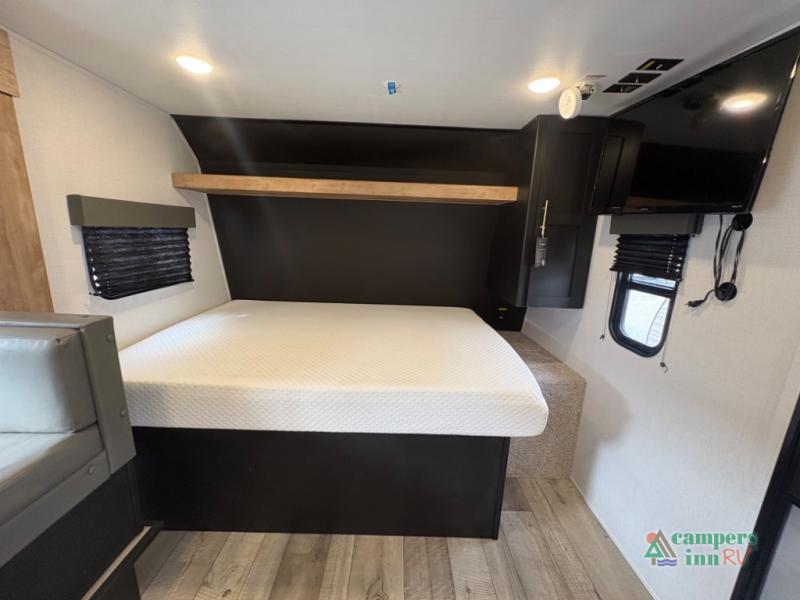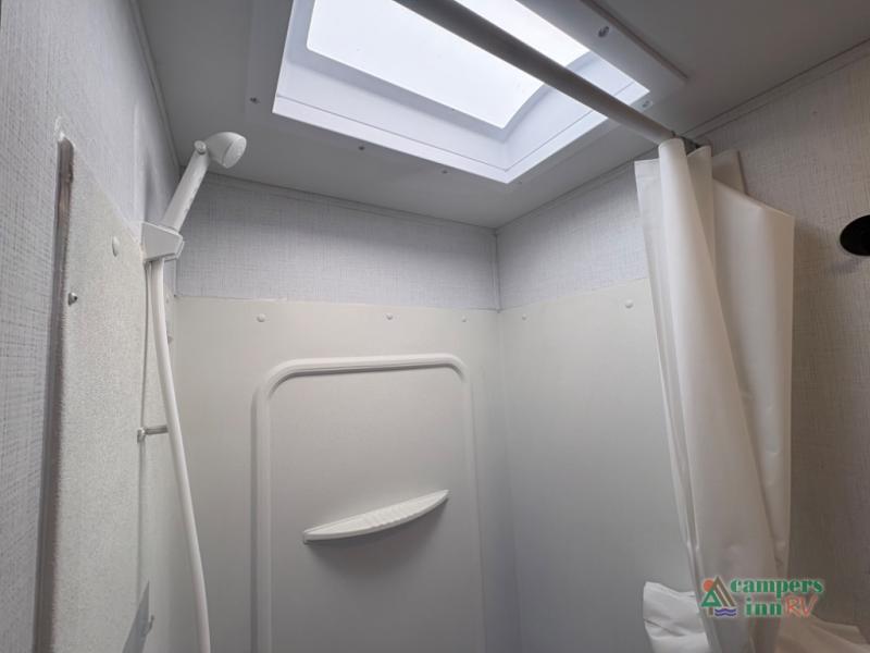 When you say "Camping" your kids will immediately think about sleeping on the bunk beds and playing outdoors! There is something about planning the trip that gets everyone excited, and once at your campsite, the excitement grows. You will have your own bed up front as well as a closet and nightstand for your things. The booth dinette doubles as sleeping space and includes drawers for storage, plus the slide provides more floor space. The cook can make warm meals in the galley kitchen, and the full bathroom will keep everyone refreshed and ready for the next day.