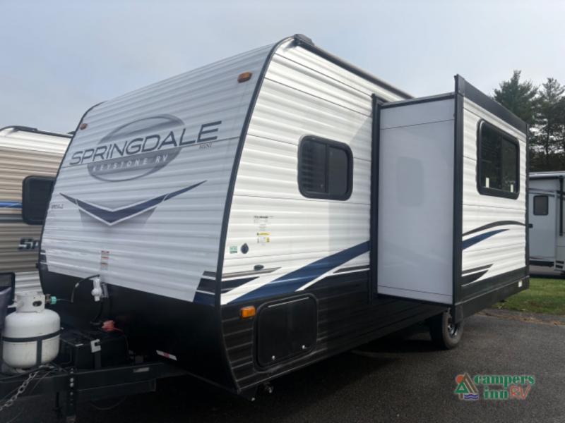 With any Springdale Mini travel trailer by Keystone, the SolarFlex 200 provides high-quality RV solar energy allowing you to take charge of how you camp! Each is built lightweight and includes Keystone Exclusives, plus the exterior has maximum 16" O.C. wood sidewall construction, Dexter E-Z Lube axles, LCI SolidStep entry, and a pass-through compartment for storage along the exterior for outdoor gear. The interior provides pressed kitchen countertops, LED lighting, metal mini blinds, pleated night shades, and more depending on the Mini you choose.