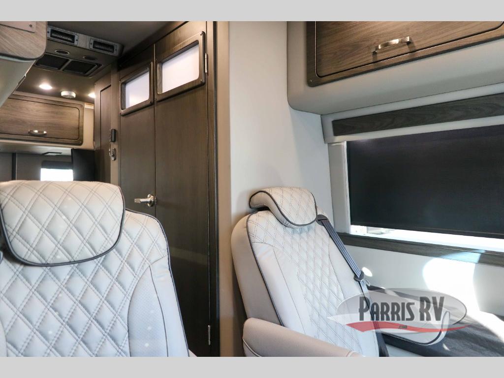 Each Passage Class B diesel motorhome begins with the safety and performance engineering of the Mercedes-Benz Sprinter and includes luxury and convenience throughout. The Suburban water heater offers instant hot water on demand, the convection microwave and induction cooktop allow you to make meals whenever you like, and the 12 Volt/110 Volt refrigerator allows you to store cold items while traveling. The style and comfort of the hand-stitched leather seating, polished wood veneer cabinets, and solid surface countertops will impress you every time you take to the road. You also have the convenience of technology with a 100-Watt rooftop solar charging system, an HDMI input, and a location prepped for satellite TV and Wi-Fi!