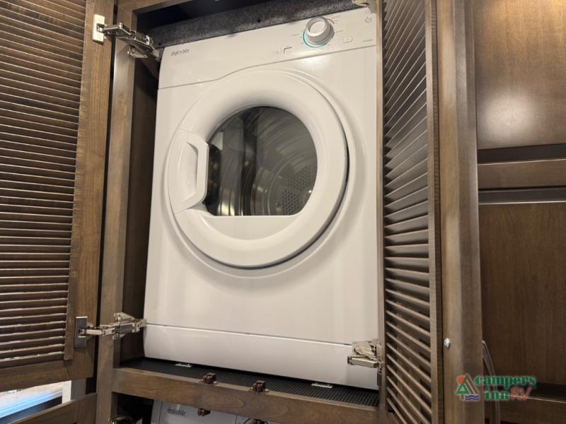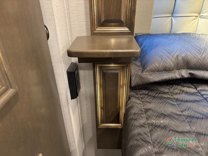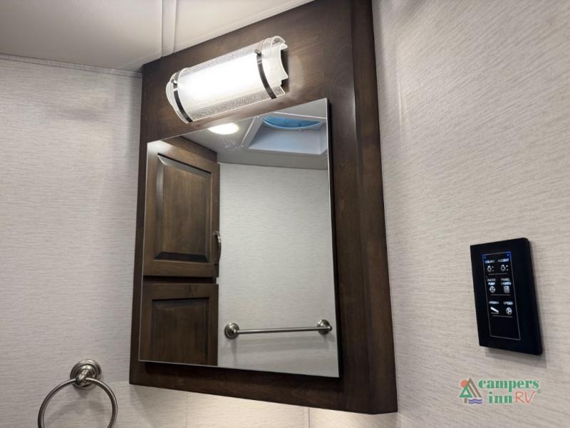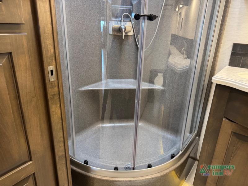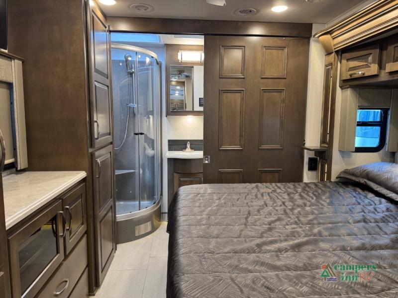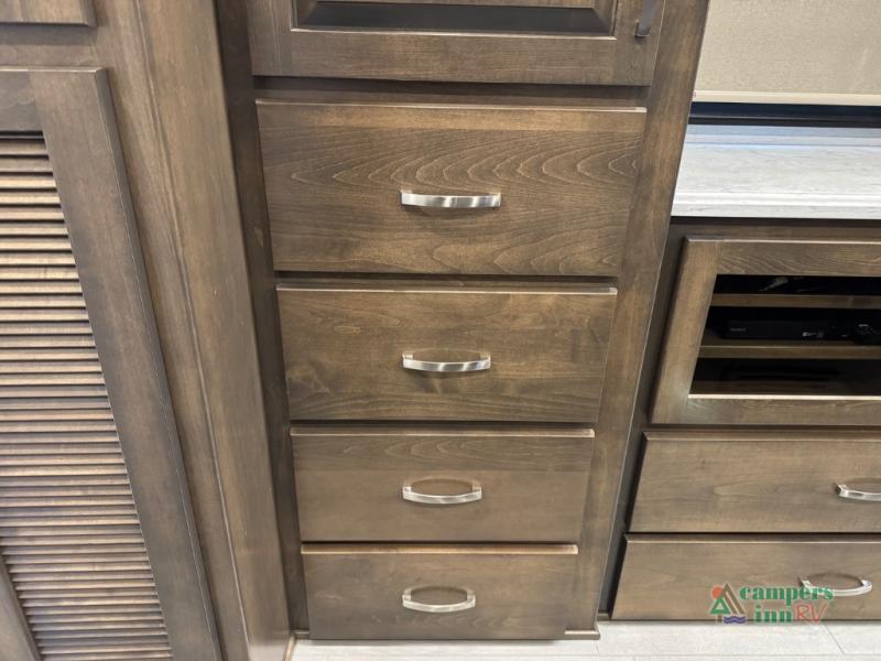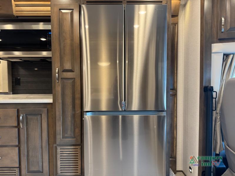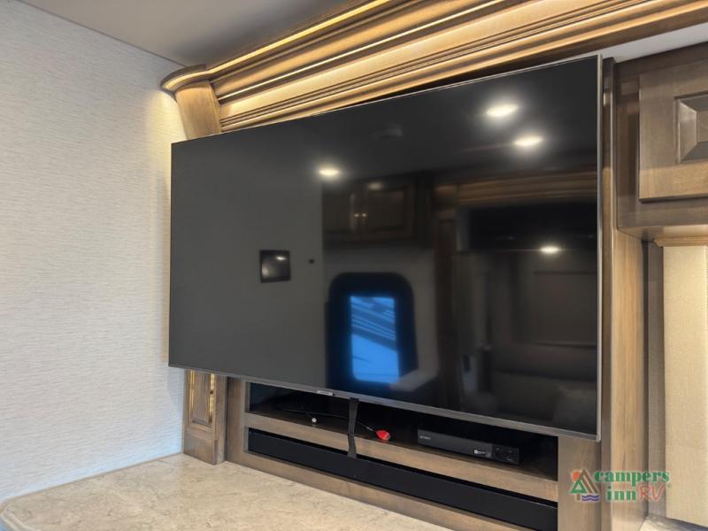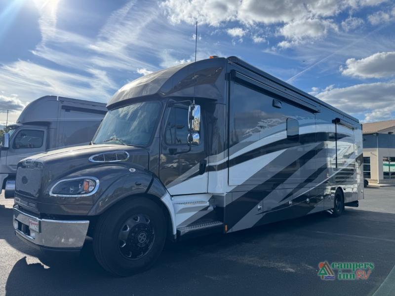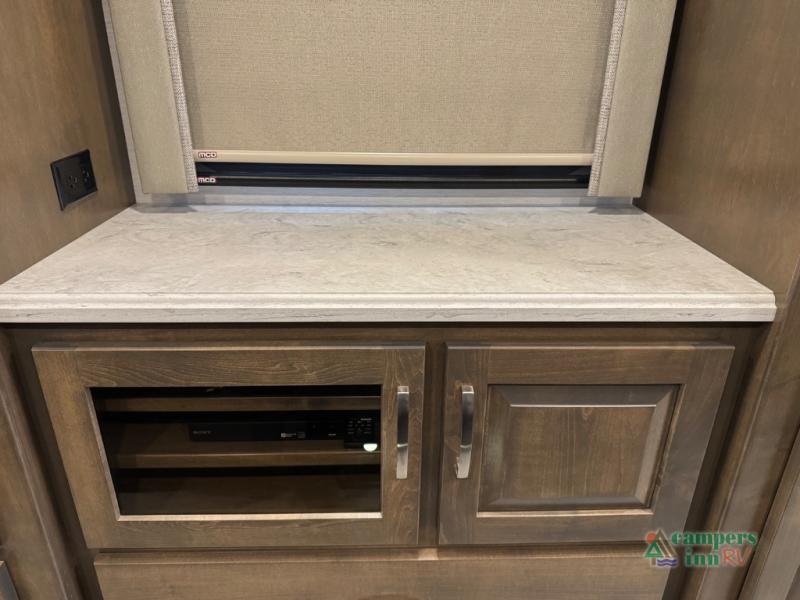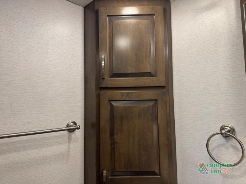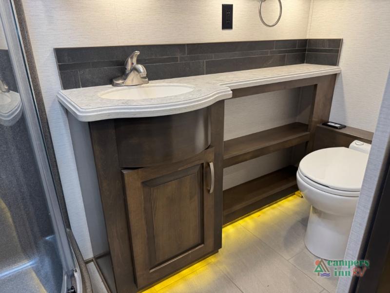 Renegade Verona LE Super C diesel motorhome 40LRB highlights: Bath and a Half Mid-Coach Entry Convertible Booth Dinette Master Suite Exterior 43" LED TV You and your spouse can dream about your next adventure while sleeping on your own iRelax memory foam mattress in the master suite with a full bathroom including a radius shower and linen storage. If you have overnight guests, they can sleep on the hide-a-bed sofa plus the dinette once converted for bedtime. And the mid-coach half bath will be all theirs. The chef-inspired kitchen offers a convection microwave, an induction cooktop and a residential refrigerator, plus more! You can entertain inside while watching the 50" 4K Smart LED TV or outside under the electric awning while enjoying the exterior 43" 4K LED TV with USB charging. There are so many more luxury and tech features to enjoy, plus a few options to add if you wish. Take a look at the list. Each Verona LE Super C diesel coach is built for the long haul from the end cap construction with a two-piece design allowing you to only replace the bottom half if chips and dings add up and the "Super Sandwich" floor construction to the Cummins 350 HP engine and Allision 3200TRV transmission allowing you to enjoy the drive as much as the destination. Other impressive features include the centralized command center with LED motion-activated lighting, the Aqua Hot hydronic heating system for radiant heating and continuous on-demand hot water, and the coach being all electric with one 3,000-watt magnum hybrid inverter. The Lambright Ultraleather furniture, the polished porcelain tile flooring, and the solid hardwood cabinetry are a few more reasons you will love the Verona LE you choose!