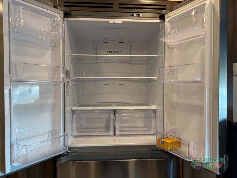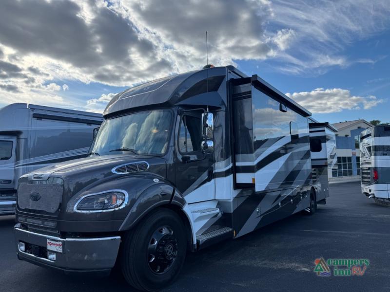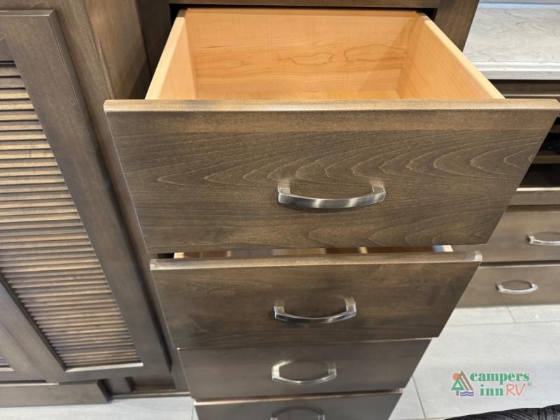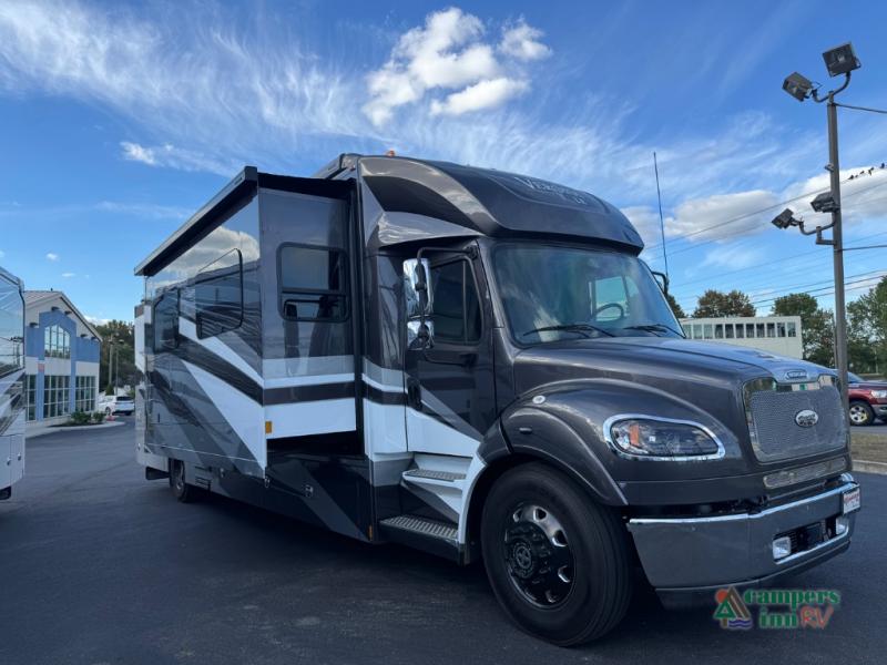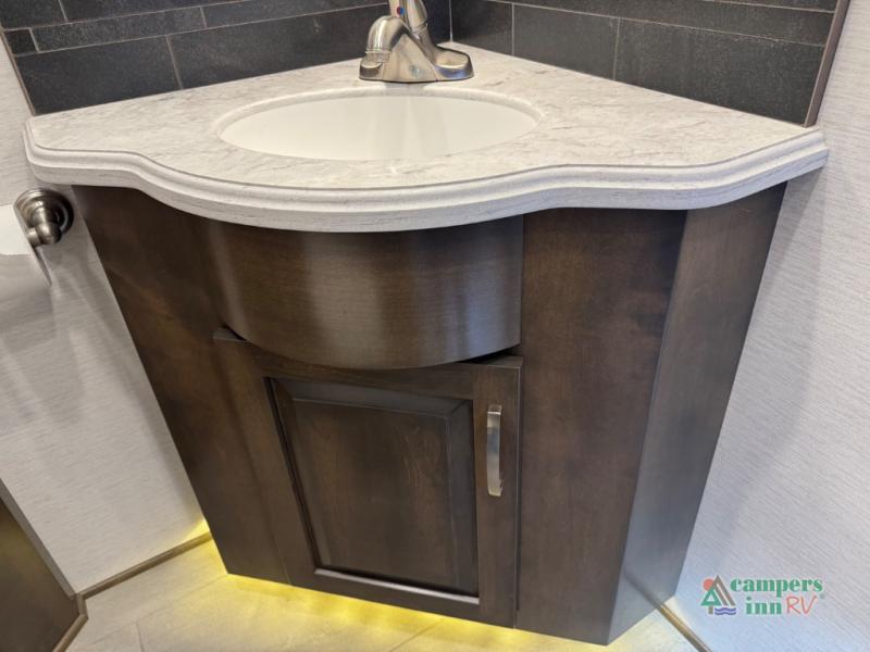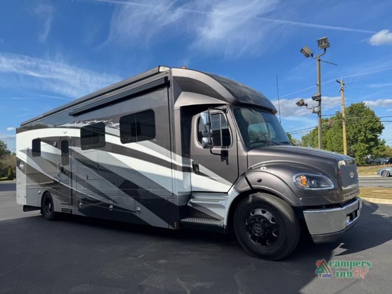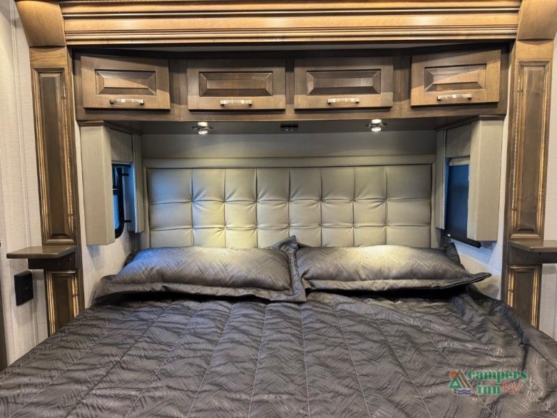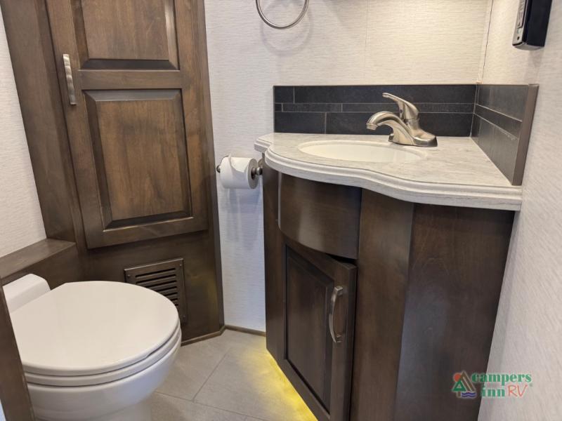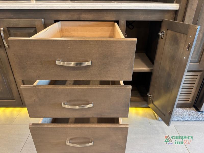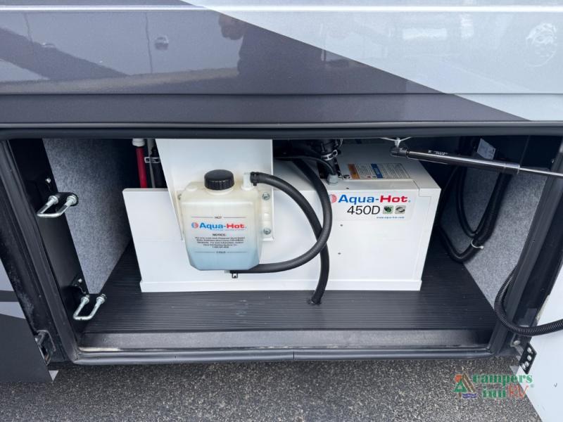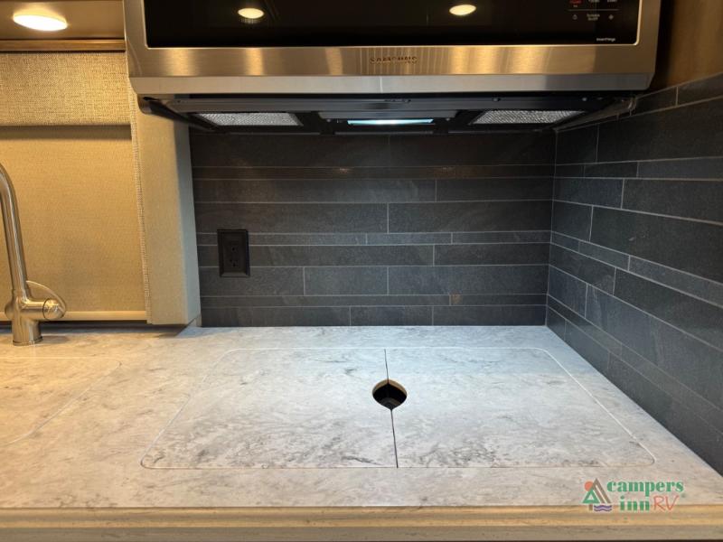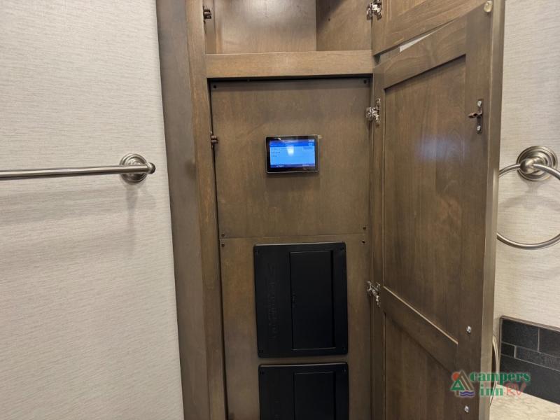 Renegade Verona LE Super C diesel motorhome 40LRB highlights: Bath and a Half Mid-Coach Entry Convertible Booth Dinette Master Suite Exterior 43" LED TV You and your spouse can dream about your next adventure while sleeping on your own iRelax memory foam mattress in the master suite with a full bathroom including a radius shower and linen storage. If you have overnight guests, they can sleep on the hide-a-bed sofa plus the dinette once converted for bedtime. And the mid-coach half bath will be all theirs. The chef-inspired kitchen offers a convection microwave, an induction cooktop and a residential refrigerator, plus more! You can entertain inside while watching the 50" 4K Smart LED TV or outside under the electric awning while enjoying the exterior 43" 4K LED TV with USB charging. There are so many more luxury and tech features to enjoy, plus a few options to add if you wish. Take a look at the list. Each Verona LE Super C diesel coach is built for the long haul from the end cap construction with a two-piece design allowing you to only replace the bottom half if chips and dings add up and the "Super Sandwich" floor construction to the Cummins 350 HP engine and Allision 3200TRV transmission allowing you to enjoy the drive as much as the destination. Other impressive features include the centralized command center with LED motion-activated lighting, the Aqua Hot hydronic heating system for radiant heating and continuous on-demand hot water, and the coach being all electric with one 3,000-watt magnum hybrid inverter. The Lambright Ultraleather furniture, the polished porcelain tile flooring, and the solid hardwood cabinetry are a few more reasons you will love the Verona LE you choose!