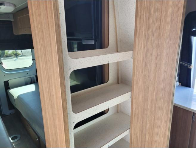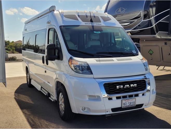 The Roadtrek Class B gas motorhomes are built upon the stylish Ram ProMaster 3500 chassis with a 3.6L V6 gas engine to power your trips near and far. The Uconnect 5 HD radio with Apple Car Play and Android Auto will make the drive just as sweet as the destination. Each model includes a 12V refrigerator, a two-burner recessed propane stove with a flush cover and built-in igniter, and ample storage space for all your belongings. The Firefly coach control system monitors the water, propane, battery charge levels, battery disconnect, and generator hour meter for your convenience. There are even solar panels to go off the grid, an outdoor shower to rinse the dirt off your feet before entering inside, and a retractable awning to protect you rain or shine. Come find your favorite one today!