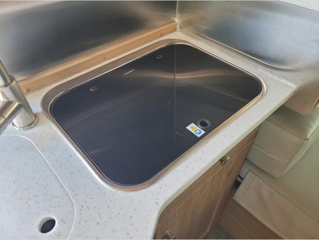 Chase your outdoor excursions in this comfortable motorhome for two! You will find side-facing rear power sofas that can convert to twin beds or a king-size bed for your comfort. If you're needing more sleeping space, just add the optional folding mattress for the front captain's seats! You can prepare at-home meals in the galley that features a two-burner propane stove, a 5-cu. ft. refrigerator, plus a counter extension with a charging station for your tablet or phone. After you've freshened up in the convenient wet bath, head outdoors for the day to enjoy the sunshine. When you return, you can make popcorn in the microwave oven and watch a movie on the 24" Smart TV!