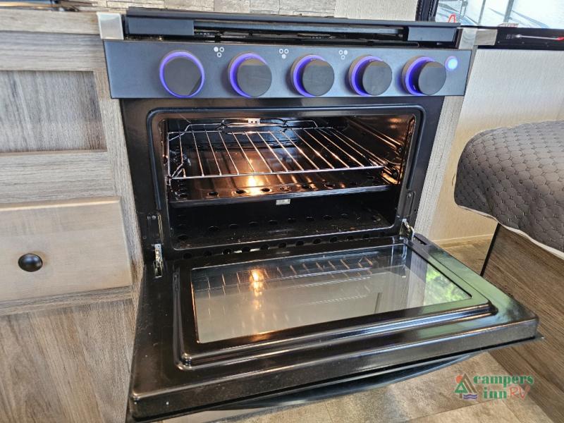 Compact yet versatile, this Sun Lite offers all the essentials: a queen bed, fully equipped kitchen, private bath, and convertible dinette. Its lightweight build and rear-entry design make it perfect for both first-time RVers and seasoned travelers who want simplicity without sacrificing comfort.