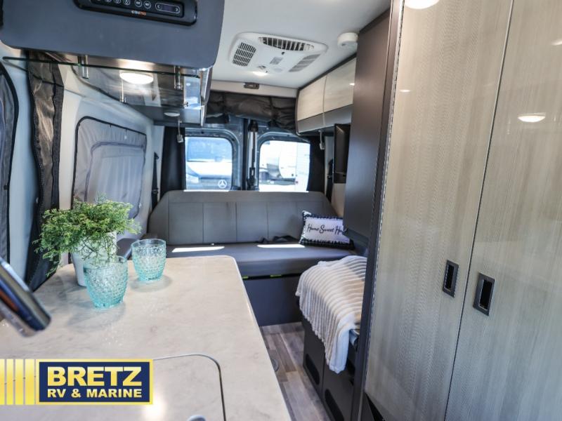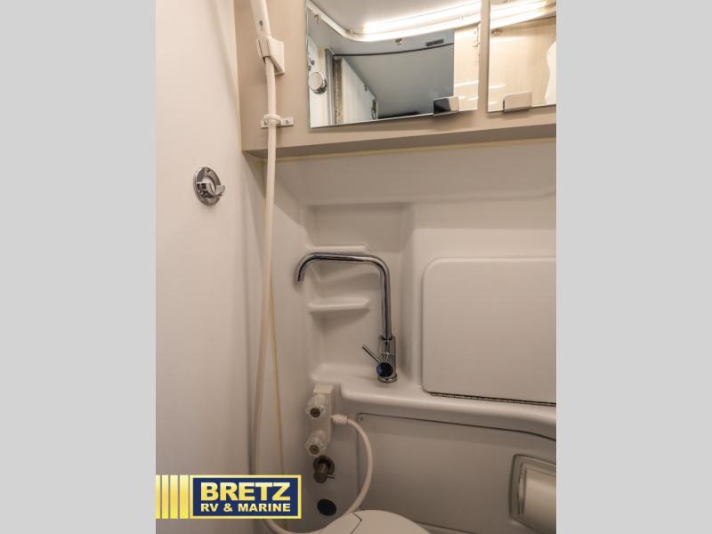The Tranquility Class B gas motorhome by Thor Motor Coach features an all-wheel drive chassis for the ultimate driving experience. Luxury amenities are found throughout, including TecnoForm Euro-style cabinetry, premium pull-down shades, a solid surface countertop in the kitchen, and Welformed interior wall panels. The driver will appreciate the keyless entry system, the tilt and telescoping leather steering wheel, and the back-up monitor for hassle-free parking. There is also a Truma Combi Eco furnace and water heating system onboard, as well as a Re(Li)able Power Pack electrical system, a Rapid Camp+ multiplex wiring control system, plus many more amenities. Experience the luxurious and exciting way to travel; in a Tranquility Class B gas motorhome!