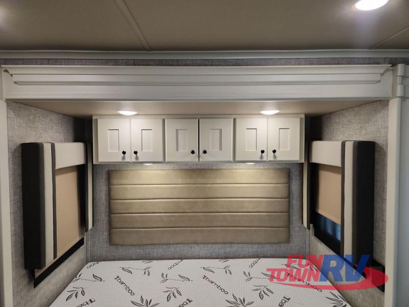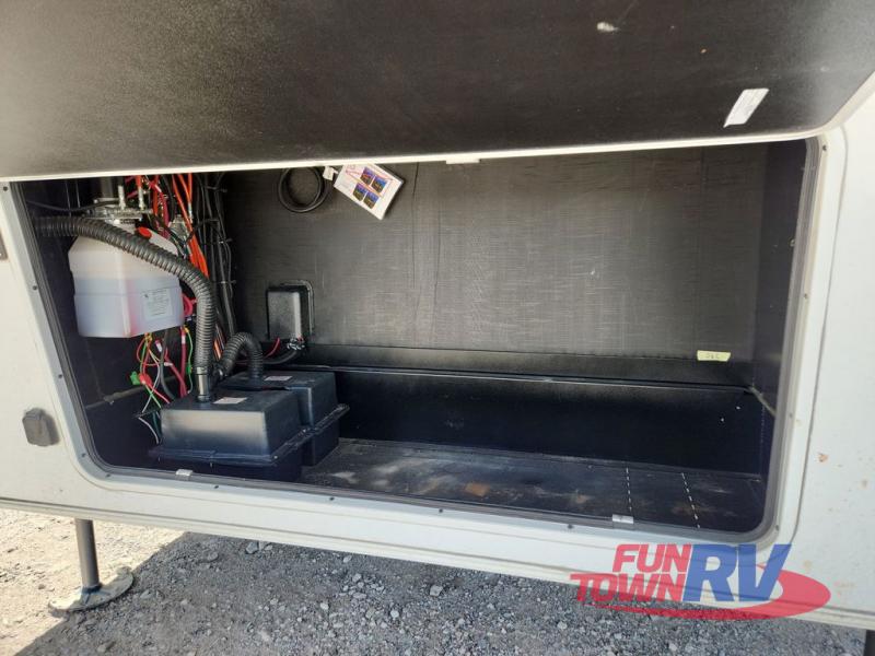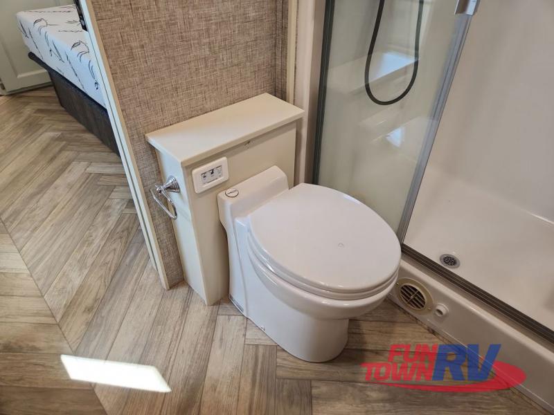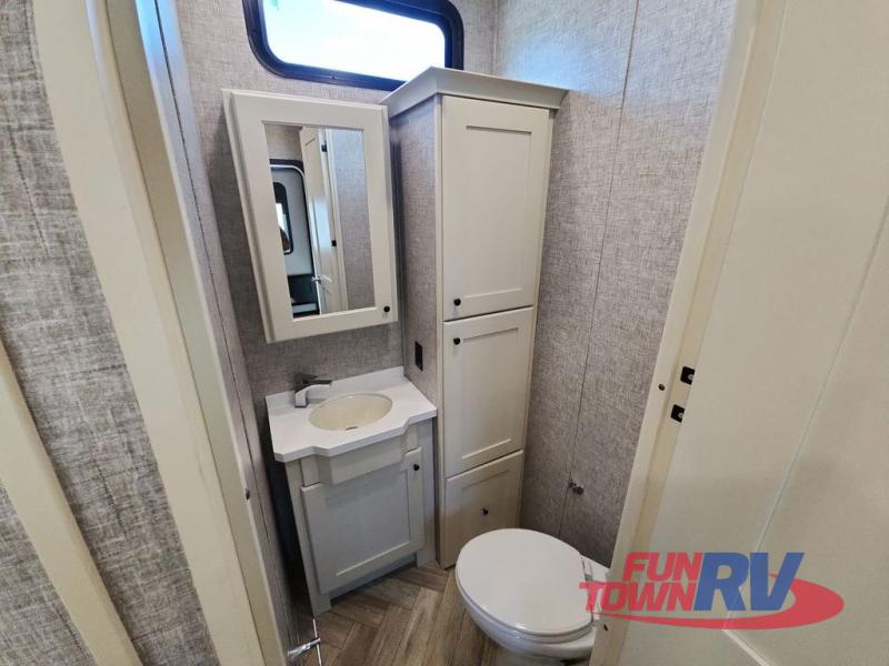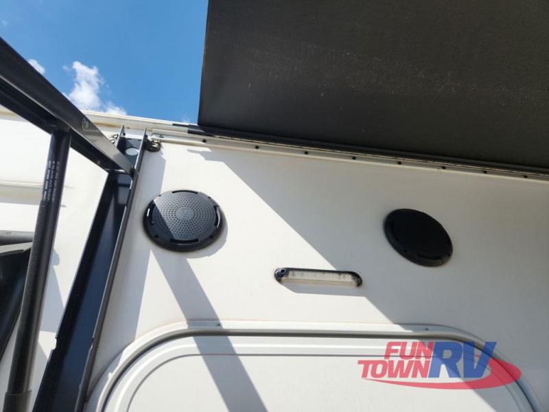 With any Vilano fifth wheel by VanLeigh will you enjoy all the comforts from home with you wherever you go. You can rely on the quality construction materials, such as one-piece sidewalls, laminated slide box end walls, and tubular aluminum upper support walls. Some of the convenient features you are sure to love are the multiplex wiring system with a digital homescreen, the Whisper Quiet A/C system, and the wet bay to manage all things "water" in your fifth wheel. These models include recessed LED ceiling lighting throughout, stainless steel appliances, and solid hardwood cabinetry that will make it feel more like a custom-built home. Each model is prewired for solar panels and back-up camera to make parking easier than ever.