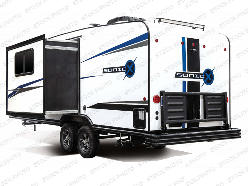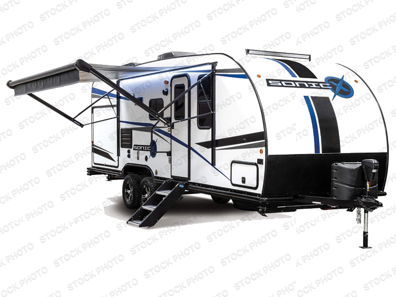 Each one of these ultimate self-sustainable Venture RV Sonic X travel trailers have been built to go off-road and off-grid for an off-the-charts adventure! The 7 1/2" BAL Norco NXG huck-bolt frame and spread axles with auto-adjust brakes and EZ lube hubs will endure every adventure you throw their way. A forced-air heated and enclosed underbelly, a 360 degree residential fiberglass insulation, and radiant foil bubble insulation wrapped tanks mean you can camp into the cooler months without damaging your unit. With the standard Sonic Xtreme Storage System package, you can store your fishing pole or gun in the concealed cabinet, strap in your bike to the hitch-mounted bike rack, and utilize the garage storage system. Pop a bag of popcorn with the stainless steel microwave for movie night, enjoy plenty of head space with the 82" interior height, and have an easy time cleaning the Beauflor residential linoleum. Come find the right model for you!