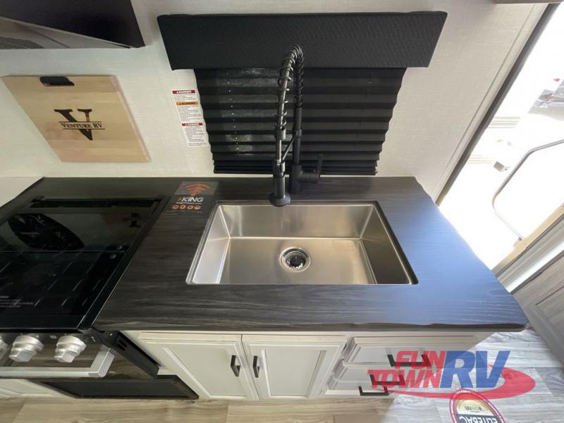 Each one of these Venture RV Stratus Ultra-Lite travel trailers have an eye-catching exterior with four color options to choose from! The exclusive LevelMatePRO system is easy and user friendly to level your unit with your smartphone at the touch of a button, plus you can save and recall your hitch position so you can spend more time enjoying your vacation. Azdel composite panels are 50% lighter than wood, prevent mold, mildew, rotting, and warping, are unaffected by temperature and humidity changes, have a superior thermal insulation, and superior sound absorption, plus there is no formaldehyde. Experience the next generation in RV frame technology with the NXG frame which is constructed with high strength low alloy prime steel and has been track tested to prove its durability. These units also have an award winning NXG slide technology for years of trouble-free performance!