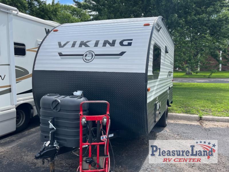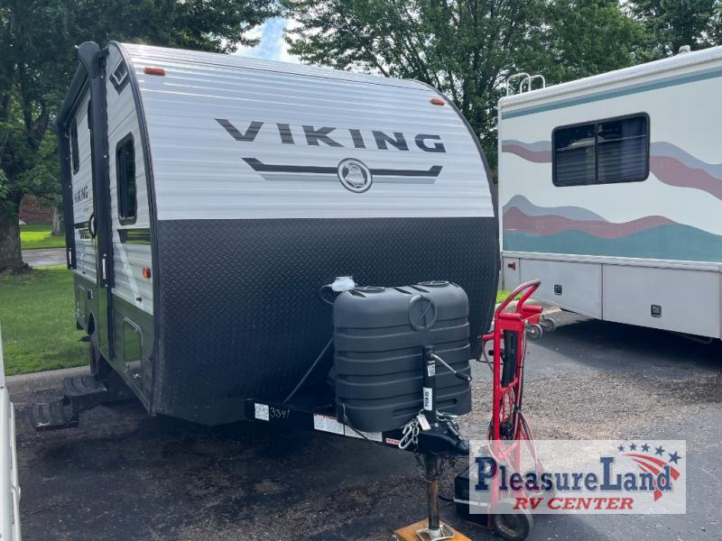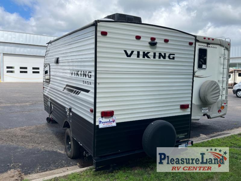 The budget-friendly Viking Saga travel trailers are for the newbie or seasoned RV user. Each model is constructed with a BAL NXG frame with Huck bolt assembly and front diamond plating so that your trailer will last. Towing and setup is made hassle-free with electric brakes, Dexter E-Z lube axles, and two rear stabilizing jacks. The Saga travel trailers include seamless countertops, a two burner cooktop, sink cover, and a bath skylight for adding natural lighting. You will also find a jumbo pass-through storage, USB charging ports to keep your electronics charged, plus both back up camera and solar prep.