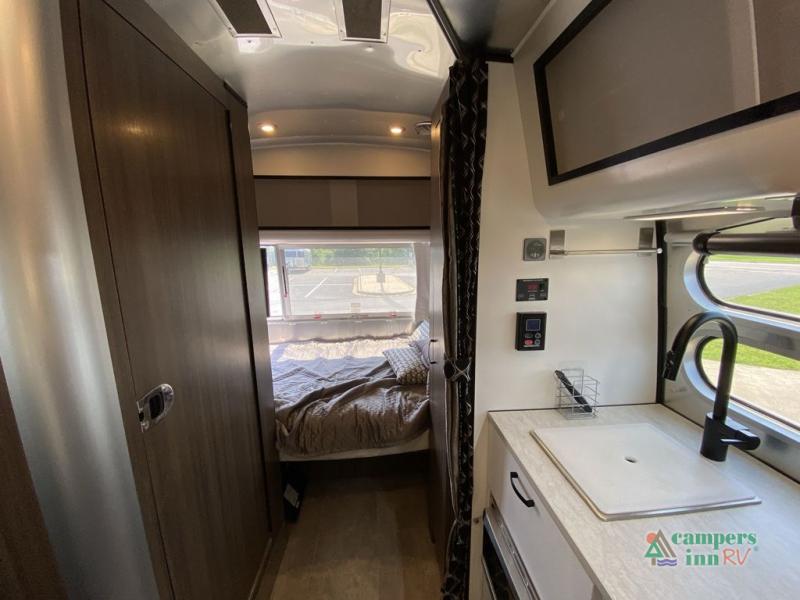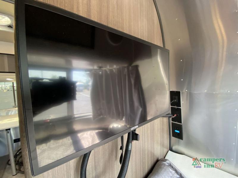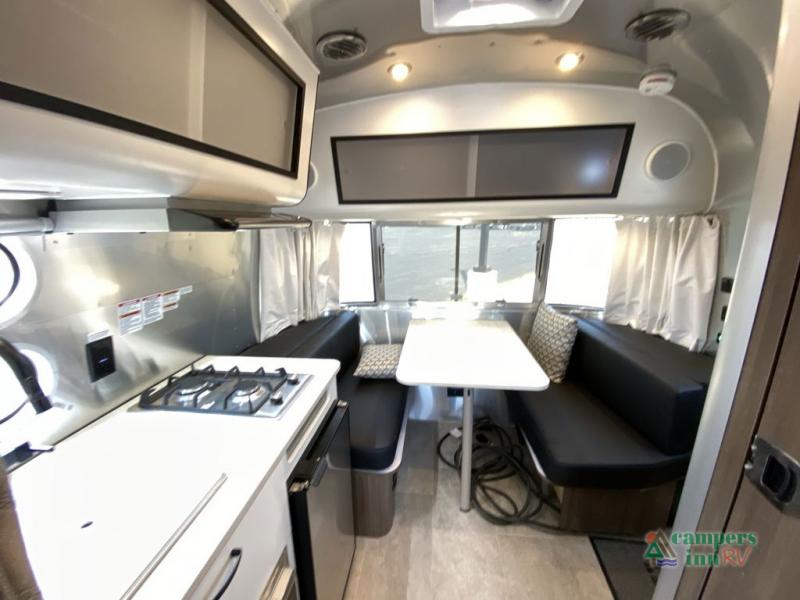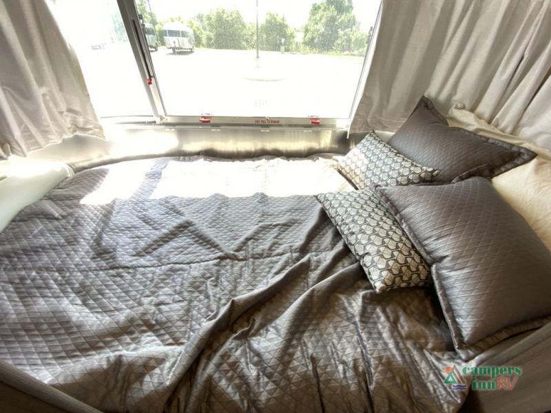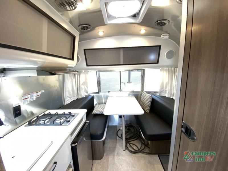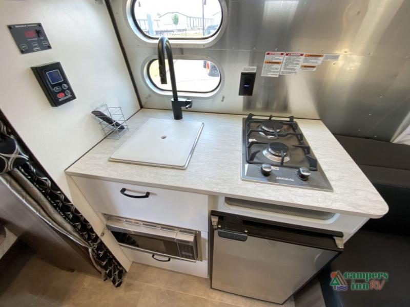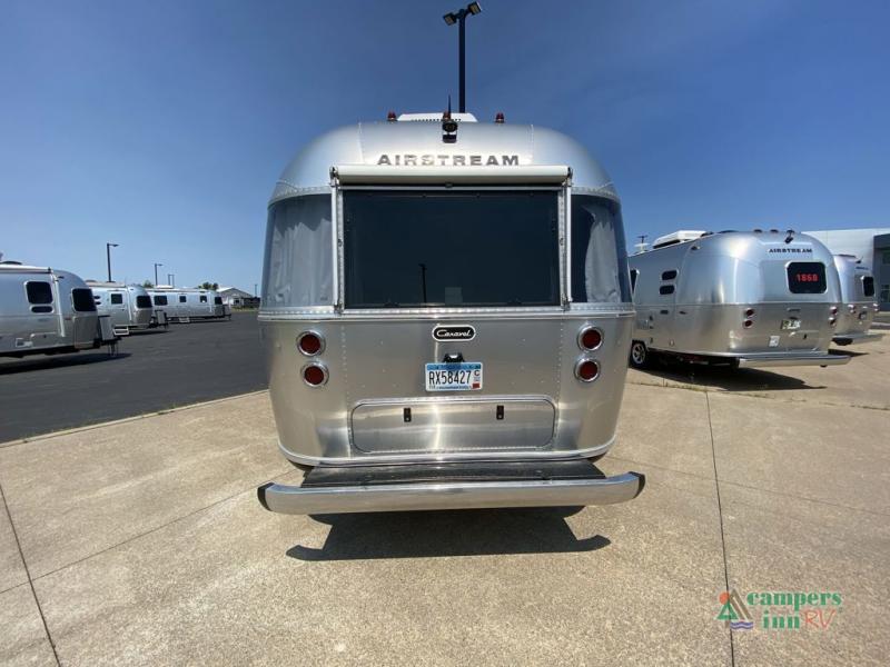 You'll always have a stylish and comfortable place to stay with the Airstream Caravel travel trailer! The manual Zip Dee patio awning is made with Tempotest fabric, and there are matching optional window awnings that can help keep the interior cool and private. The rear polished bumper with storage will help you keep your tools, cords, and more hidden away in a bonus storage space, and the JL Audio stereo with Bluetooth connectivity and four speakers, surround sound, and subwoofer will play your music throughout the trailer. You can stay powered while off the grid If you add the 100w or 200w optional solar package, depending on the model you choose, and the blackout curtains will let you have privacy when you head to bed. The stainless steel front stone guard protection will prevent damage to the body of your trailer while towing, and the panoramic windows will make the interior fresh and bright with natural sunlight.