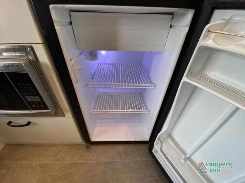 This easy-to-tow Caravel travel trailer is super capable and super durable! The kitchen features a two-burner gas cooktop, a stainless steel sink, a microwave, and a Baraldi cooking vent with light. You'll find storage space in the hanging closet next to the kitchen and the under-bed storage. And the pillowtop memory foam mattress is going to provide you with a very comfortable night of sleep.