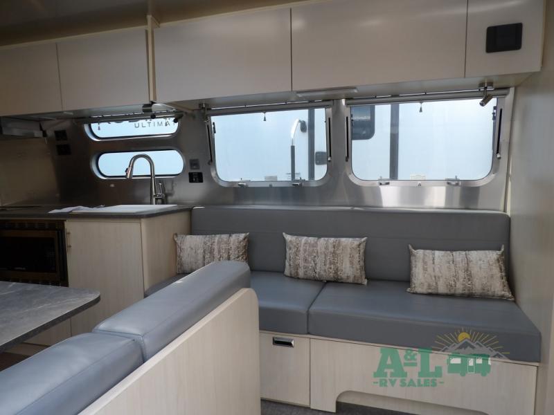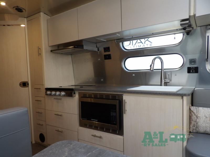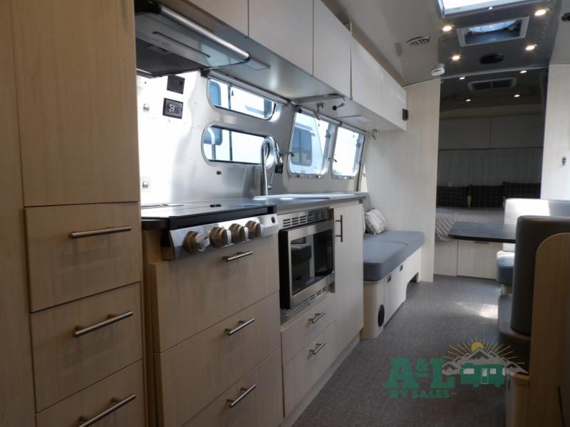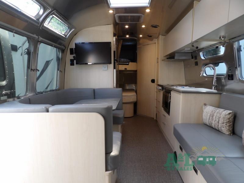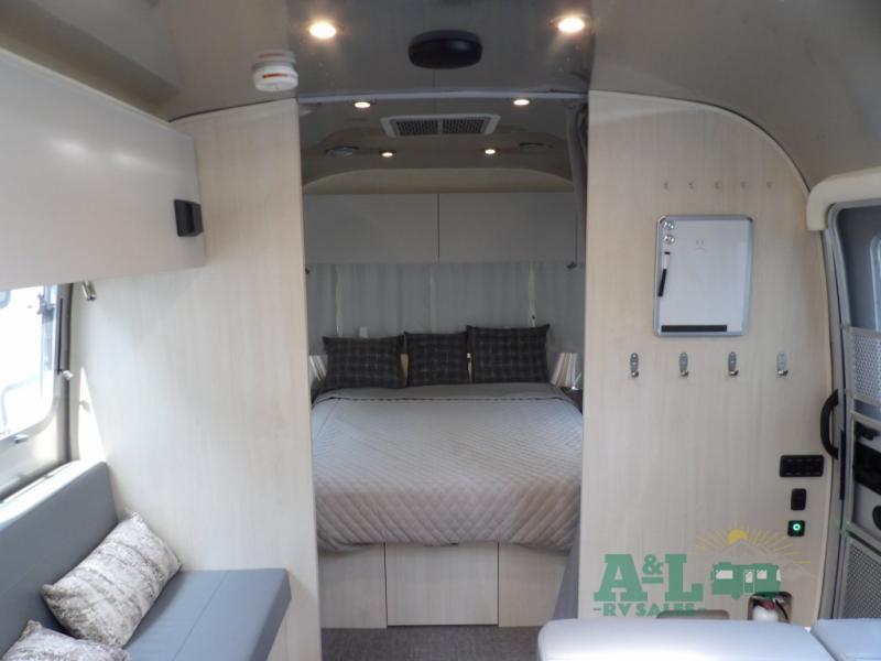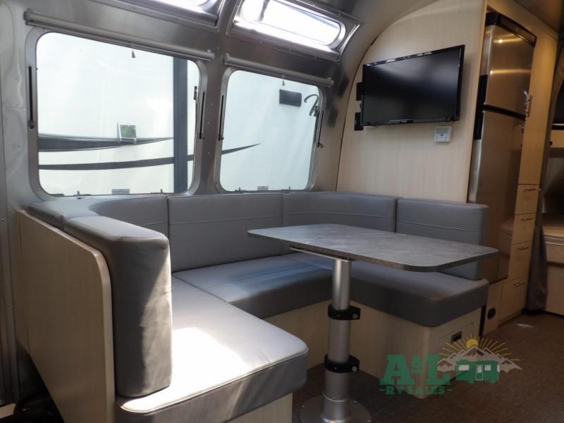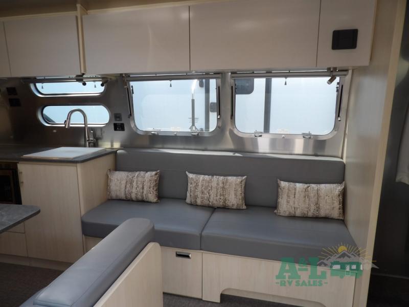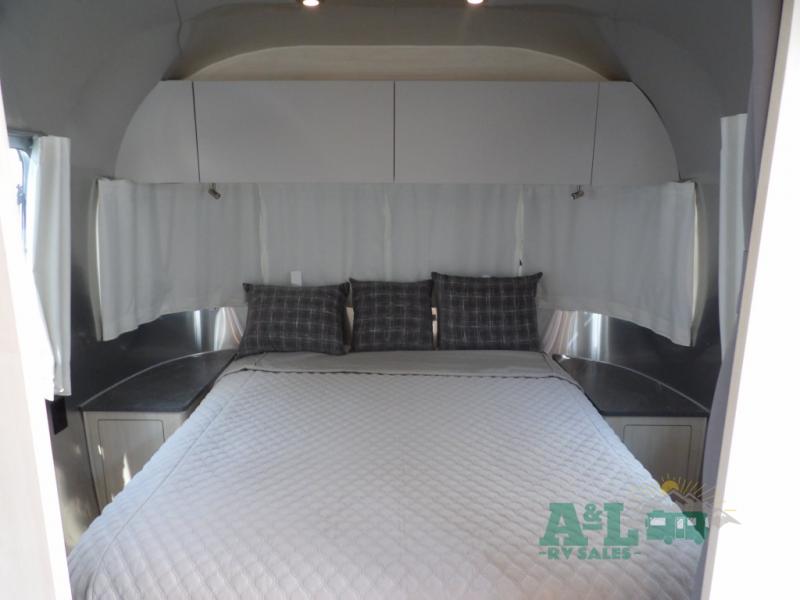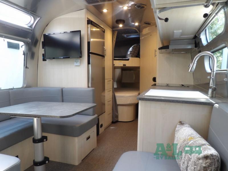 The family-friendly and popular Flying Cloud travel trailers by Airstream are built for ease of towing with a rear-view camera to make reversing and parking easier and stainless steel front stone guards to protect the lower segments from road debris. The iconic Airstream design is created outside and inside by the semi-monocoque aluminum superstructure, the temperature reducing one-piece white aluminum roof, the panoramic front windows, and the stylish aluminum wheels. The interior will have you feeling right at home with handcrafted cabinetry, plenty of storage and counter space, sleek roller blinds and blackout curtains, plus residential style faucets!