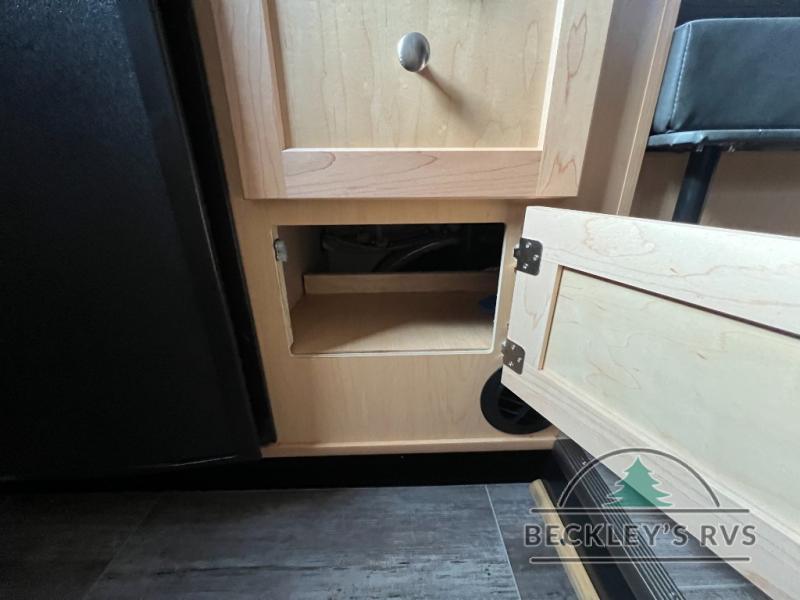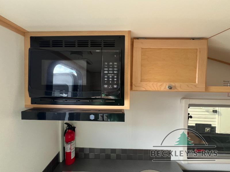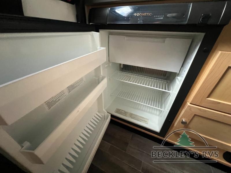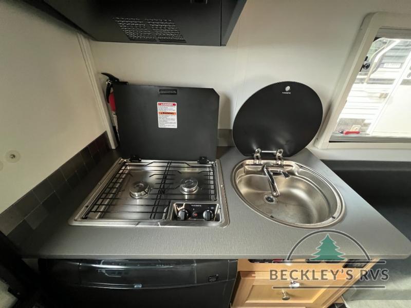 Your time at the campground will be complete with this lightweight travel trailer. There are two dinette seats with a table to dine, relax, and convert to a 77" x 72" bed size when you're ready for bed. You won't have to use the camp's facilities thanks to the wet bath with an enclosed shower and toilet combination plus a shower door for privacy. This model includes a two burner cooktop, a sink, plus a 3.0 cu. ft. two-way refrigerator under the range to store your perishables.