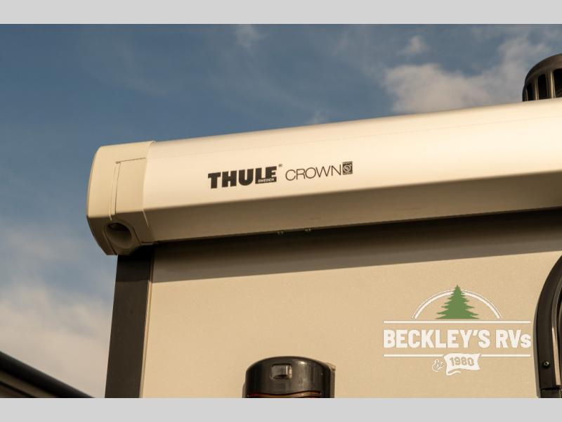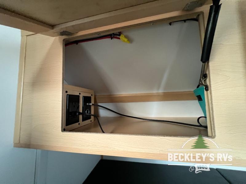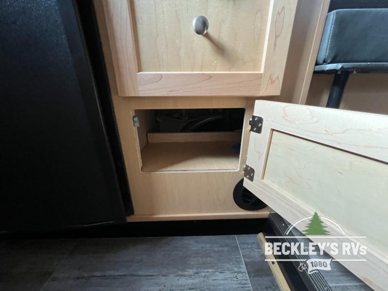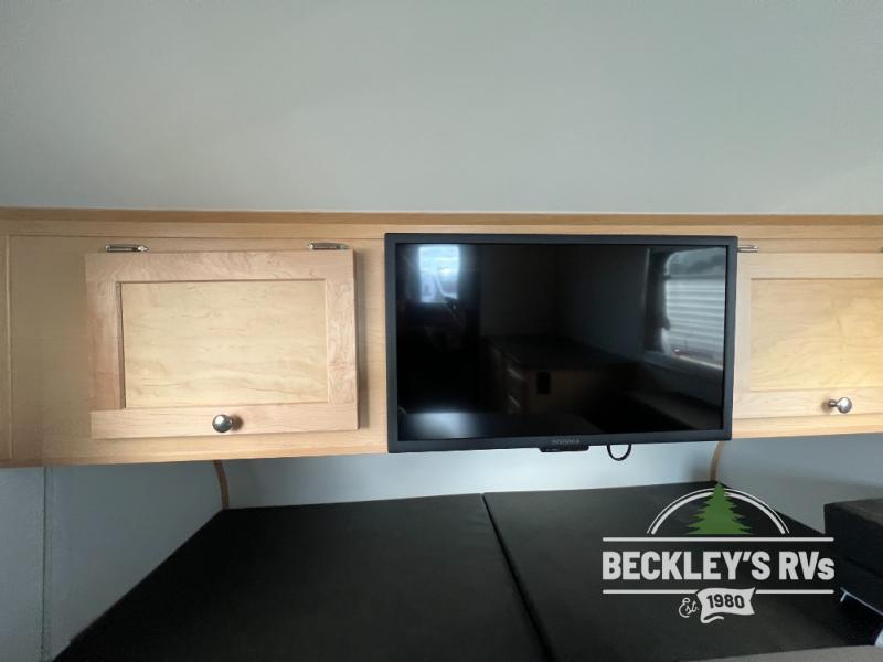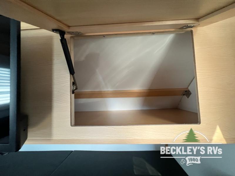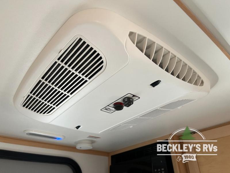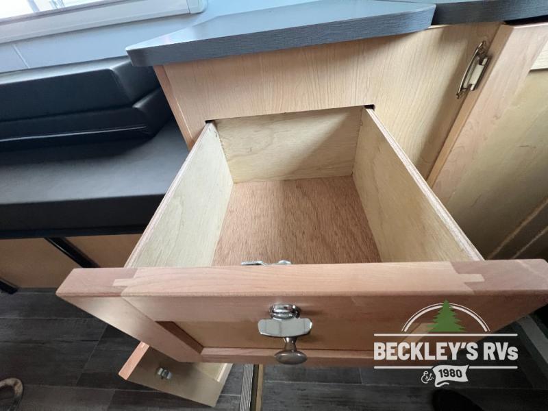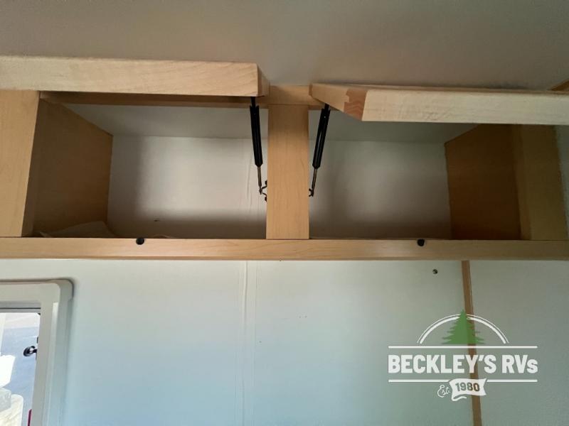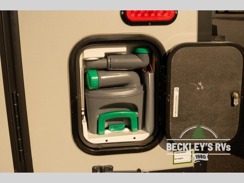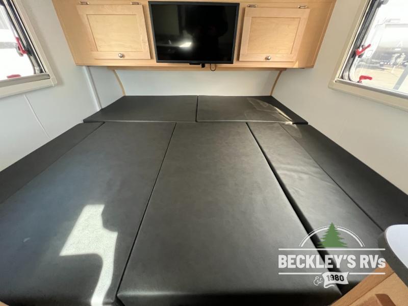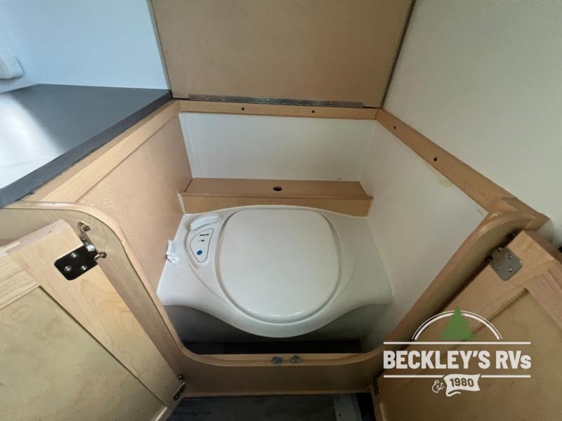You'll love this travel trailer that features a little more interior space for a more at-home feel. There are two dinette seats with a table where you can dine each day, and this area can fold down to create a 77" x 72" bed size. You might even even want to watch movies in bed with the 23" flat screen TV! This model includes a cassette toilet so you don't have to use the camp's facilities in the middle of the night, and you can make breakfast on the two burner cooktop in the morning.