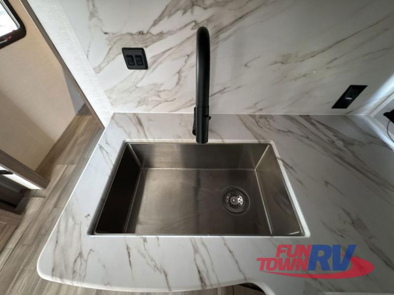 Form and function works together with every one of these Alliance RV Delta travel trailers! They are built with a walk-on roof with a seamless PVC roof covering, Mylar reinforced exterior seals, and a heated and enclosed underbelly to protect your unit in all seasons. The commercial grade vinyl flooring will be easy to clean and the oversized atrium windows throughout let in plenty of natural sunlight. With 62 cu. ft. of drop frame pass-through storage, you can bring along all of your essential camping gear plus it has USB charging for more convenience. There are many at home interior conveniences including a Bluetooth speaker, USB charging throughout, and even a pull-out kitchen trash can. Come find your favorite model today!