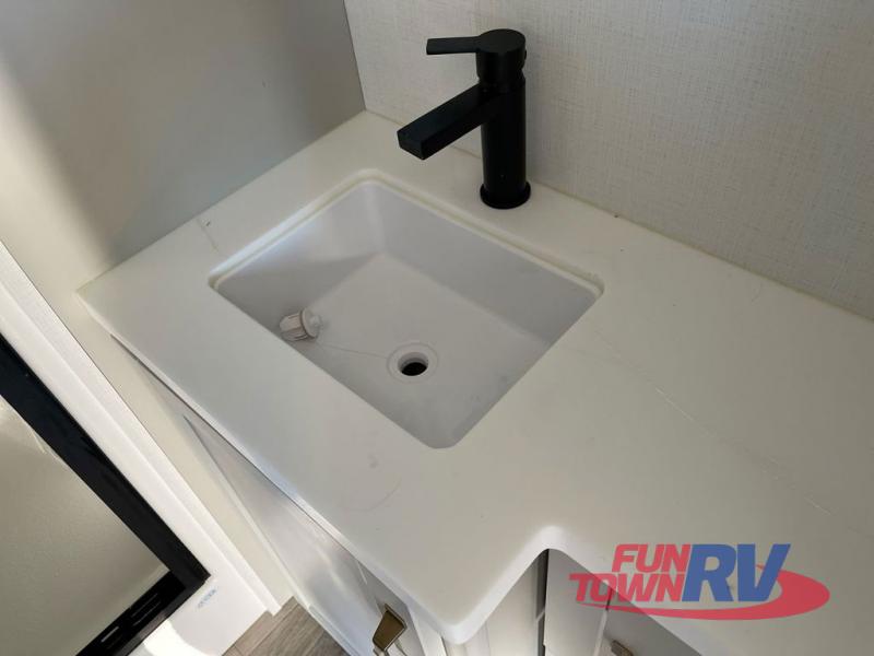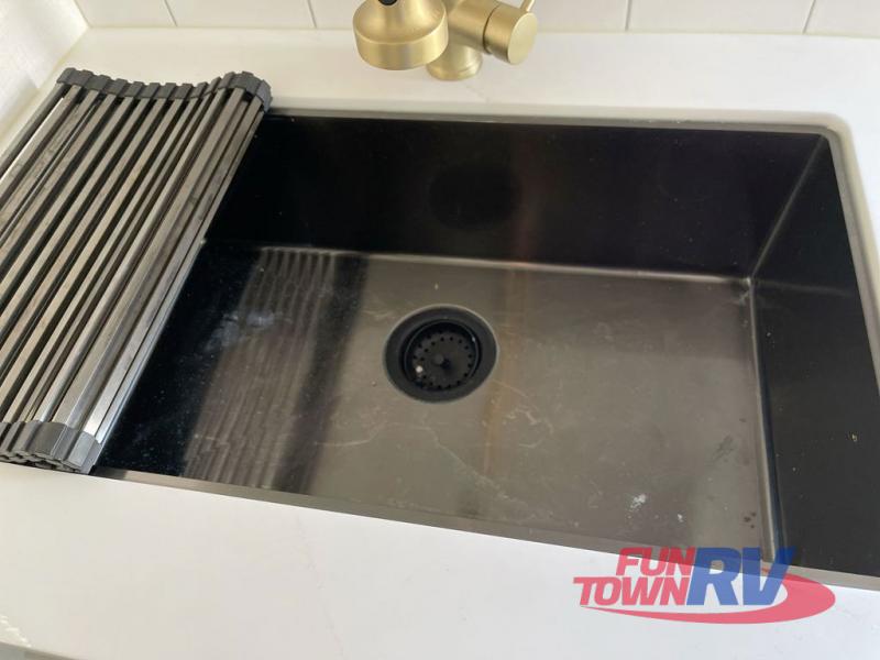 With any Model Z Air travel trailer by Brinkley, you will enjoy premium features at every turn. The industry-first low maintenance roof is sure to be appreciated, plus there are industry-first brass plumbing connections for excellent resistance to corrosion. The drop-frame chassis with over 100 cu. ft. of exterior storage will allow you to bring along camp gear galore, plus there are motion lighting and power outlets for added convenience! You'll also find two hot/cold showers outdoors, along with a 370-watt solar panel, a custom LP box with locked battery storage, and a premium utility center with a retractable 65' water hose to wash off mud from the lake. The interior is just as accommodating with its solid surface countertops, Brinkley CraftSense wood trim construction, integrated window screens and insulated blackout blinds, and the list of luxury features goes on!