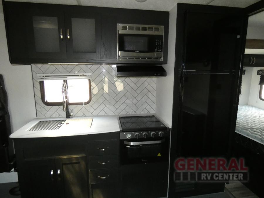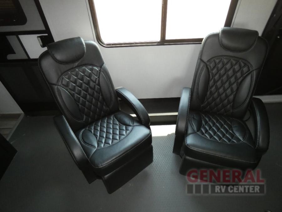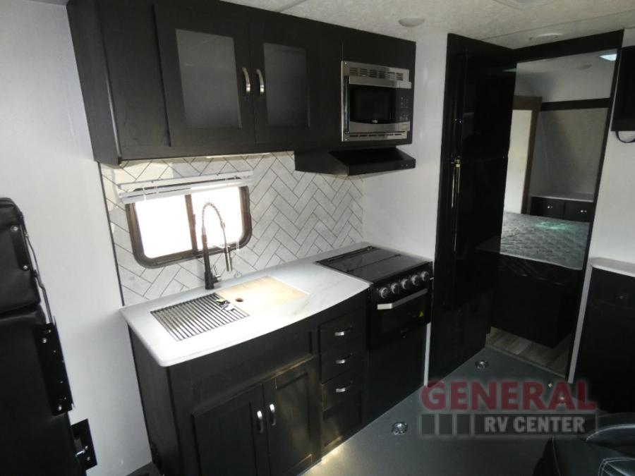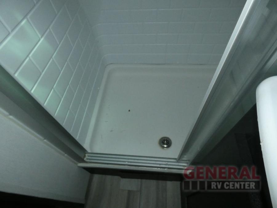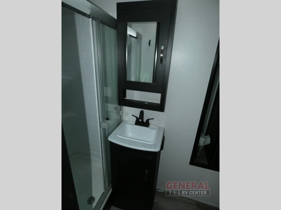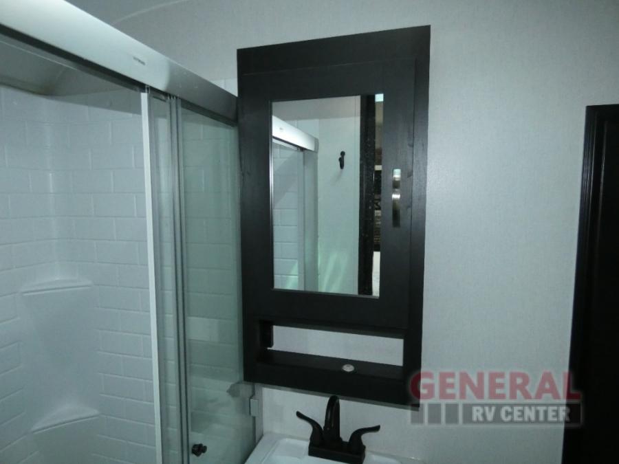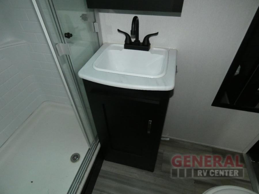 With any Adrenaline toy hauler travel trailer by Coachmen, the required Exterior Value package includes a one-piece Tufllex PVC roof membrane, a fiberglass front cap with rock guard to help against road debris, heavy duty Dexter axles with Nev-R-Adjust brakes and E-Z Lube, and aluminum wheels. Some exterior standards include a heated and enclosed underbelly, a patio ready ramp door with cables for an outdoor above ground space to enjoy, a power tongue jack for easy setup, and an outside spray port to clean off your toys. The interior standards include HD rubberized oil/gas/moisture resistant flooring in the garage area, shaker style cabinets and doors, a rear detachable screen, and USB charging ports in multiple locations for your electronics to mention a few.