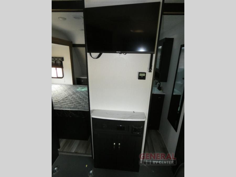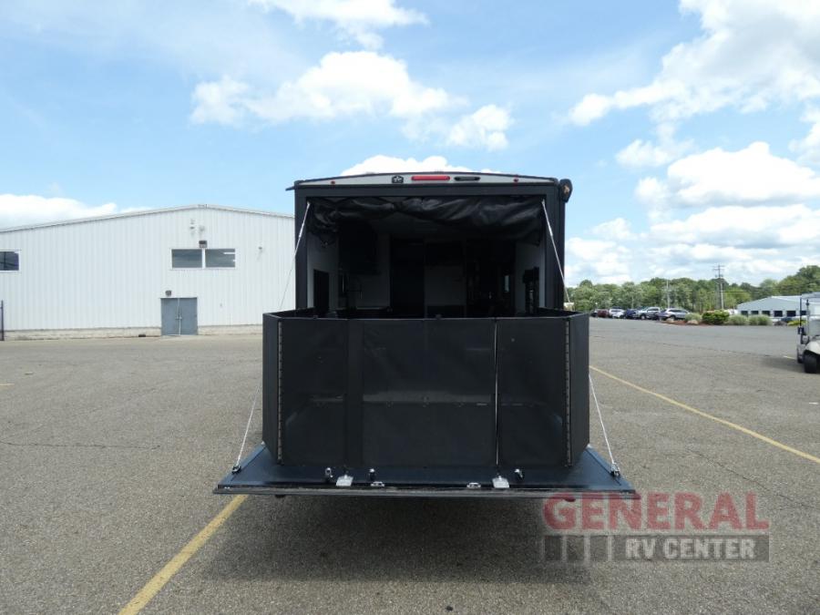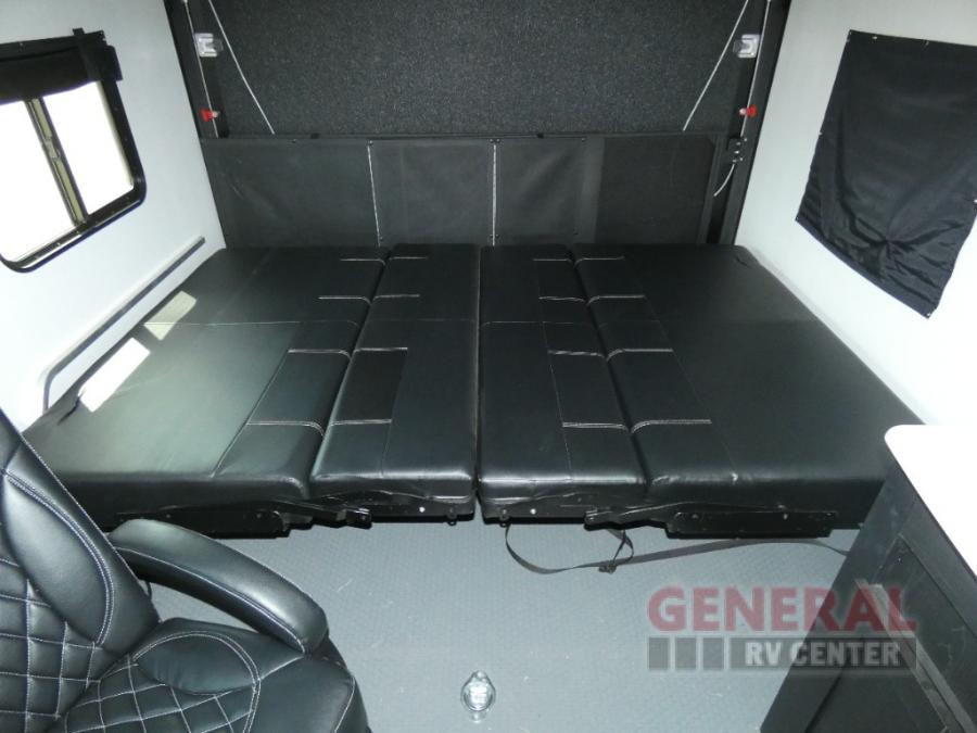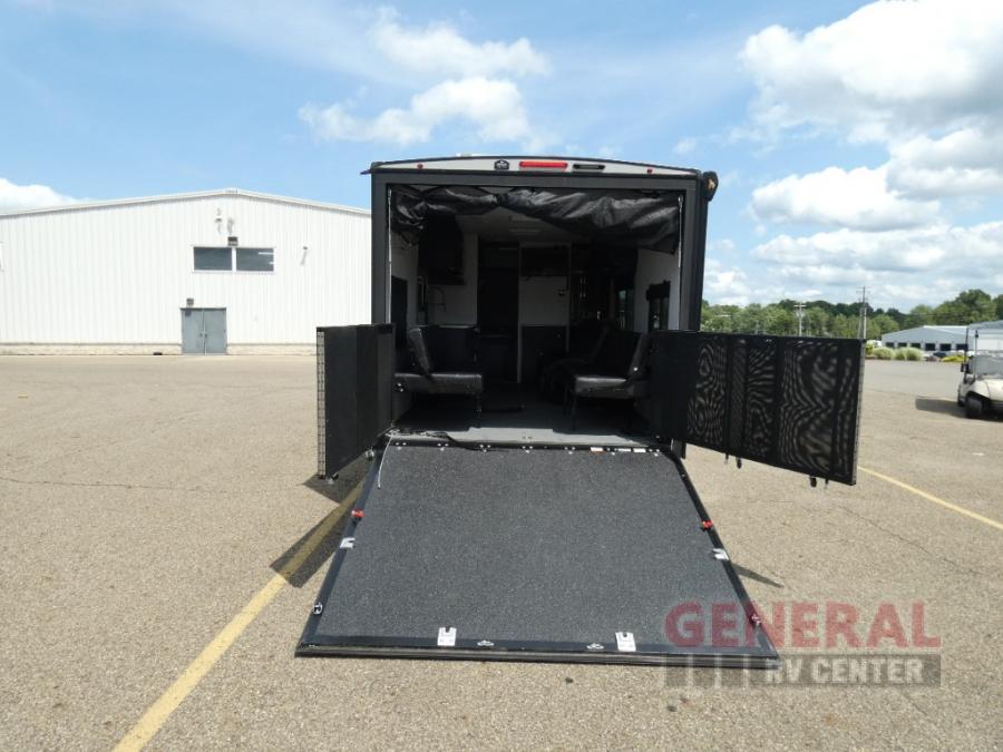 Load up your toys into 13' 8" of cargo space, your clothes in the dresser and wardrobe, your gear in the overhead cabinets, and your food in the refrigerator for a weekend or longer trail ride! The chef of the group can prepare breakfast on the three burner cooktop that includes an oven or use the microwave and there is plenty of storage space in the overhead cabinets for kitchen necessities and snacks. The dual entry bath and a master bedroom are both along the front of the trailer giving you privacy and convenience. When it's finally time to call it a night, you will enjoy the queen bed slide and your guests can convert the two roll-over sofas for a great night's rest.