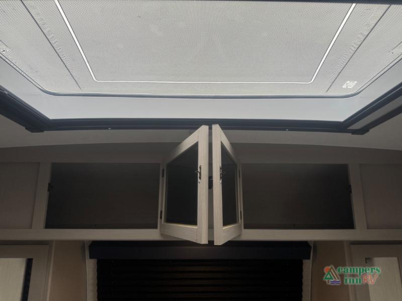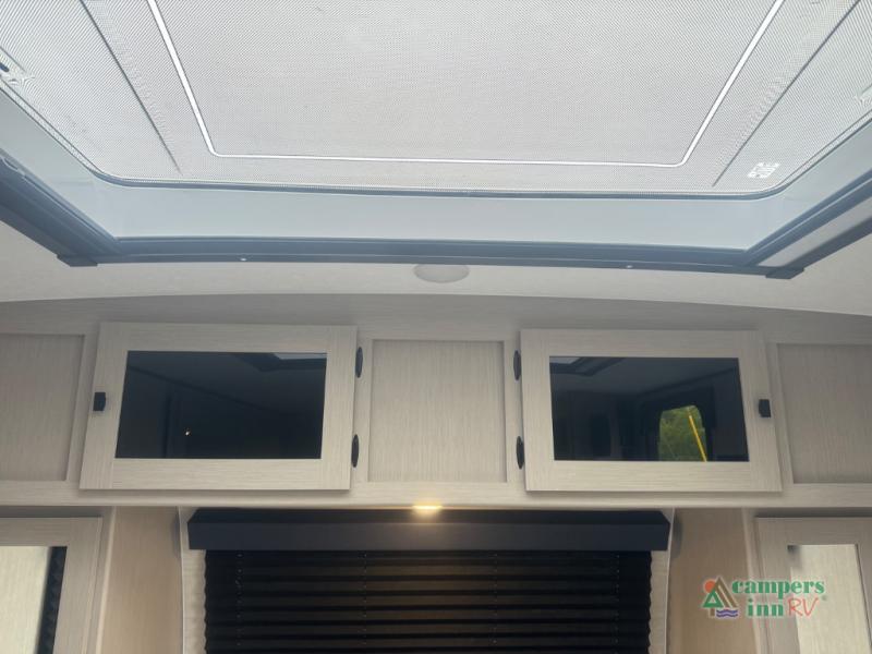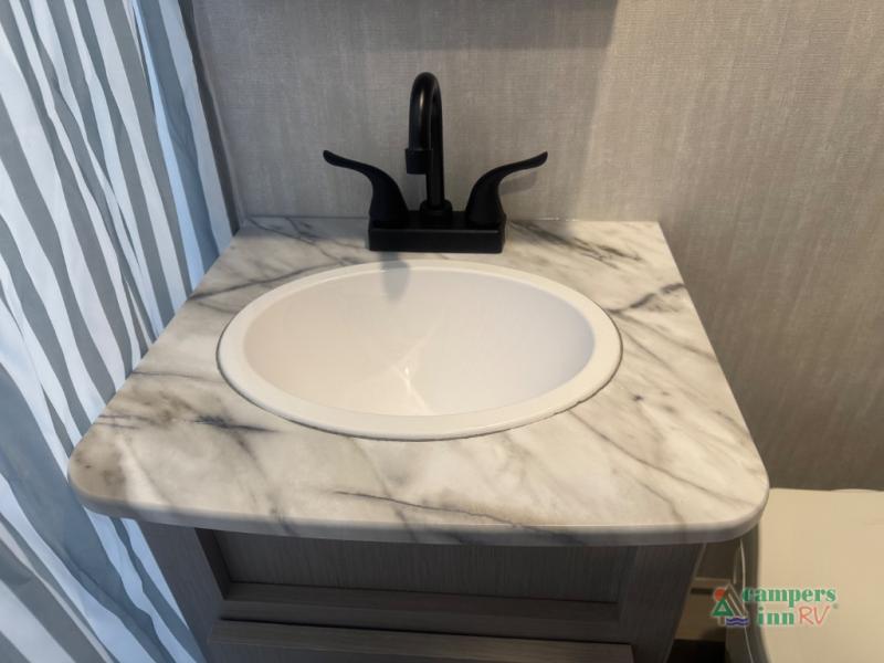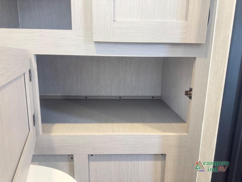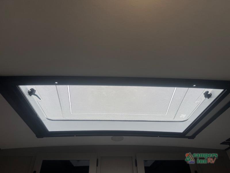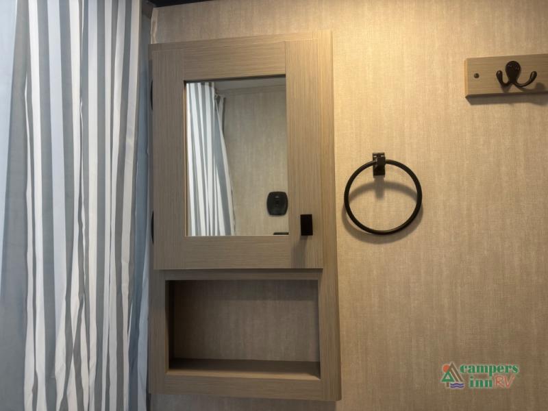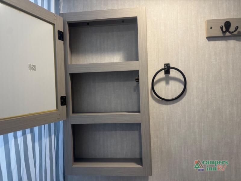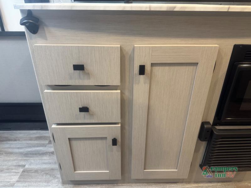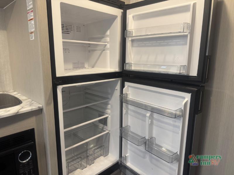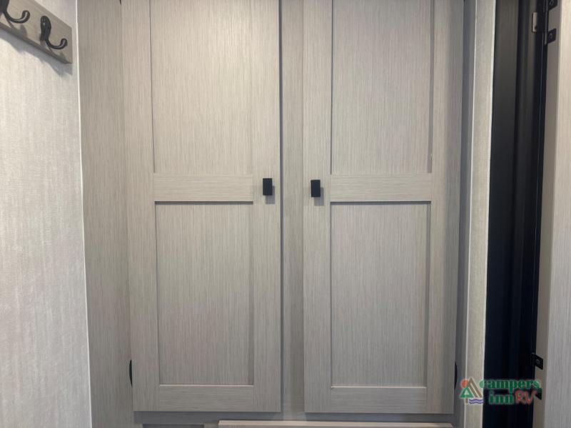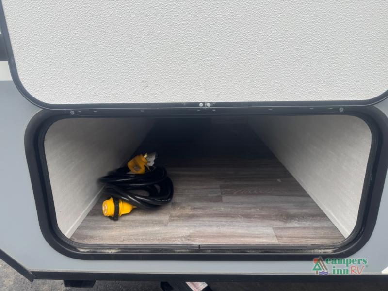 Whether you camp with friends, family or solo, this trailer gives you space for all with a spacious main living and kitchen area thanks to the booth dinette slide! The rear full bath offers a shower, sink, toilet and a wardrobe so you can get ready in privacy. The cook will love the two burner cooktop and microwave to whip up a meal or heat leftovers, and the pantry gives you space to store your snacks. The walk-around queen-size bed provides convenience when getting in and out of bed and there are two wardrobes and overhead cabinets to keep your belongings up and away. The power awning protects you from the elements when relaxing outside, and the exterior pass-through storage gives you a place to stow the outdoor equipment like camping chairs, tables, fishing poles and charcoal.