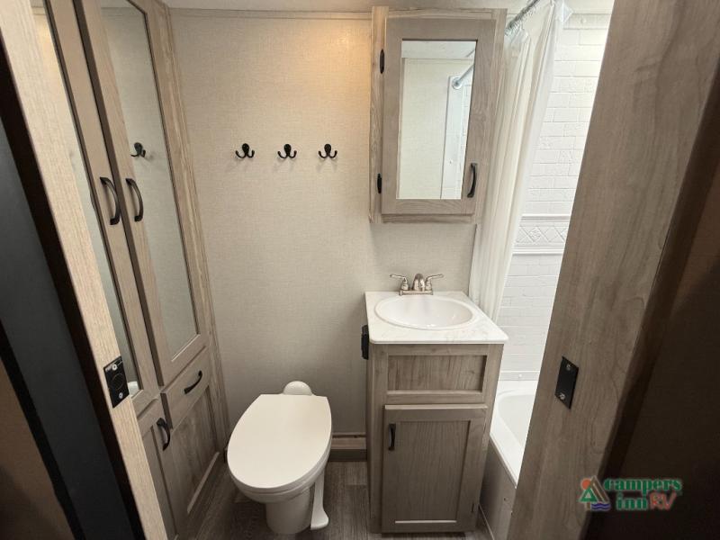 Two Full Bathrooms: One in the bunkhouse, one in the main/living or near bedroom area.