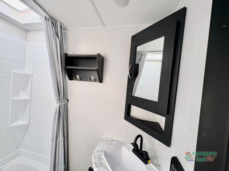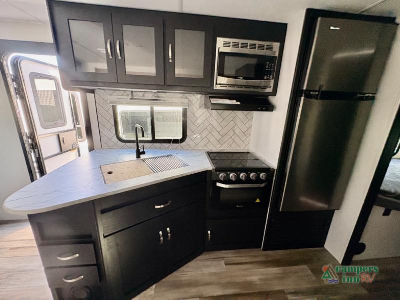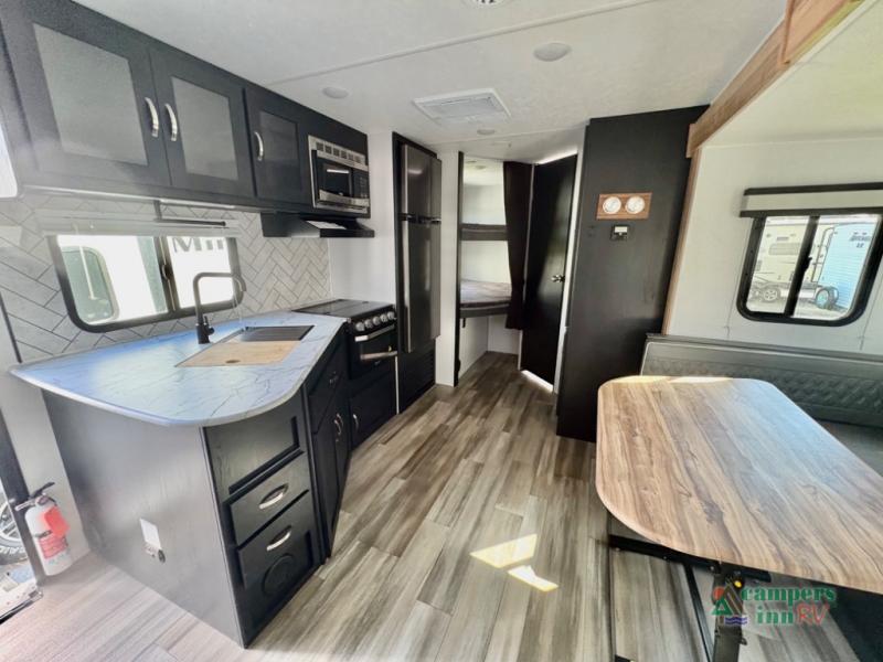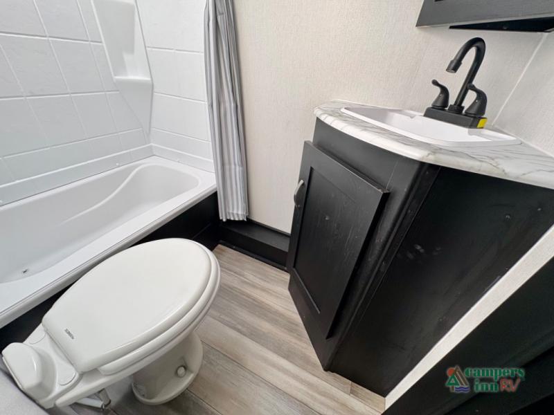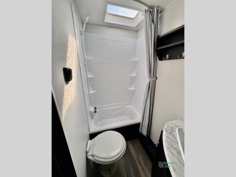 Step inside and experience the open-concept living space with modern finishes, a spacious kitchen, and abundant storage. The Freedom Express 257BHS includes a large 8-cu. ft. refrigerator, three-burner cooktop with oven, microwave, and deep basin sink. A full bathroom with a tub/shower combo makes cleanup easy after a day of exploring.