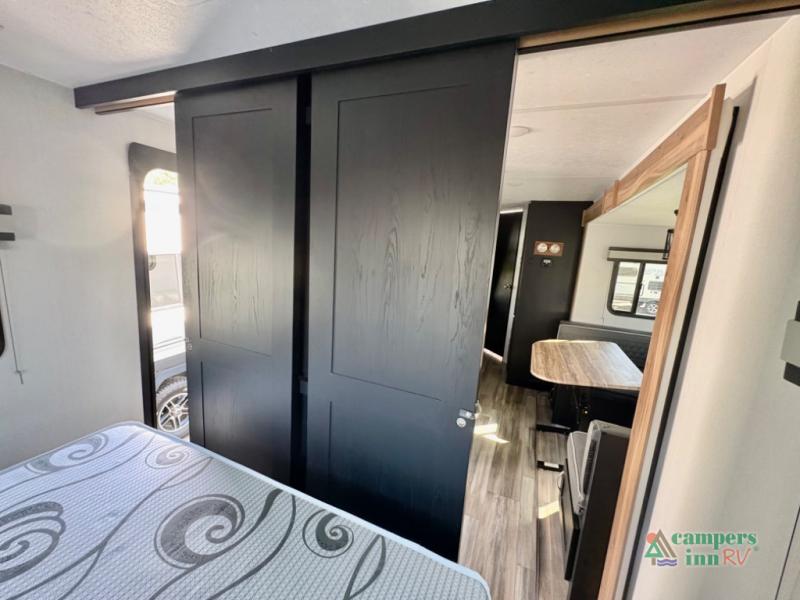 Coachmen’s Freedom Express line is known for its quality construction. With Azdel composite panels that resist water and mold, vacuum-bonded walls, and aluminum framing, this trailer is built to last through years of adventures. Plus, it’s solar-ready for extended stays off the grid.