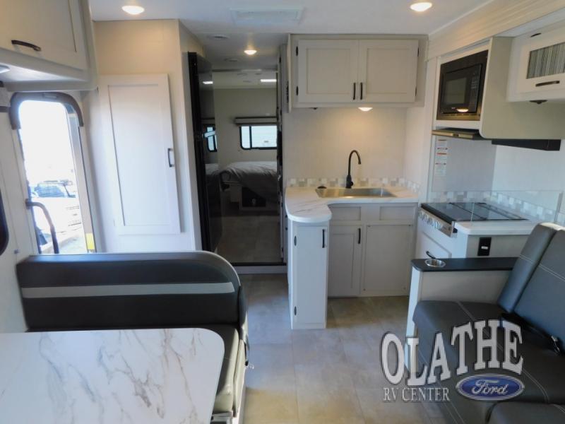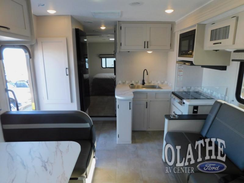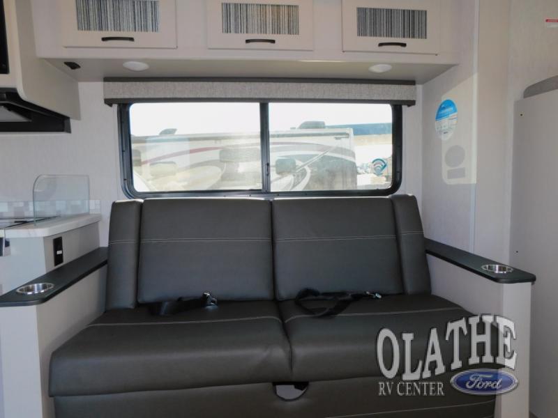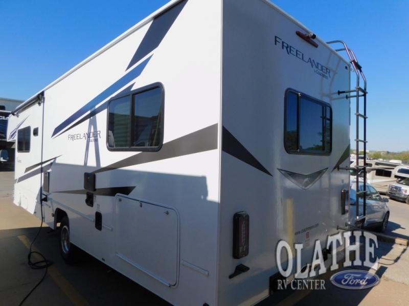 What sights will you see with this Freelander Class C gas motorhome? This model includes the CRV Comfort Ride which features heavy duty front and rear stabilizer bars, electronic stability control, Firestone Ride-Rite adjustable rear air bags, and more for an enjoyable journey each time. Will you set out to the beautiful Grand Canyon or trek through the Rocky Mountains? Whatever you choose to do, the accommodating features found in this coach will make every experience comfortable, like the queen-size bed in the rear private bedroom, the 72" sofa in the main living area, and the full bathroom with its standard shower and skylight. You will also find a full kitchen with a three-burner range, a residential microwave, and a double-bowl sink, so you will certainly eat well throughout every adventure. The kids are sure to love sleeping on the 30" x 68" booth dinette with a flip-up bunk above, plus there is more sleeping space on the cab over bunk and the furniture in the main living area!