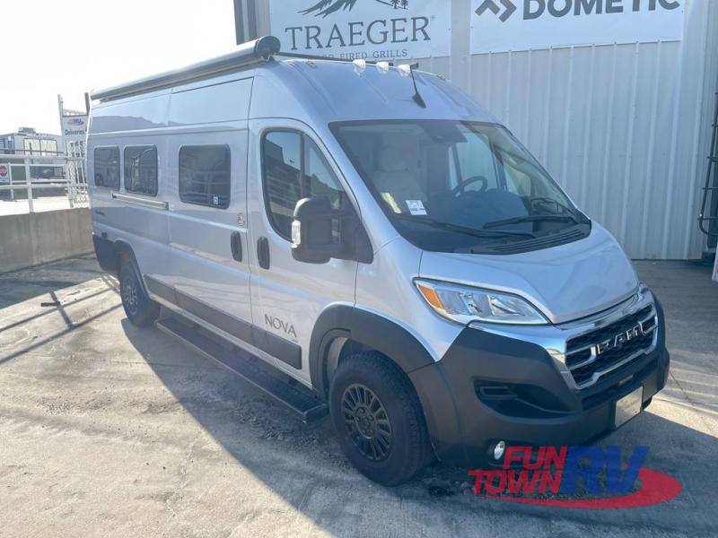 Each Nova Class B gas motorhome by Coachmen features Sumo Spring front and rear suspension for a smooth ride. Each unit is built on a Ram ProMaster 3500 chassis, and is powered by a 3.6L V6, 24 valve engine with 280 HP. You will appreciate the innovative Firefly multiplex system, the Sure Level tank sensors, and the 3 Group 31, 115AH AGM batteries for added power, as well as a new 24" LED Smart TV to help keep you entertained on long trips. Inside, you'll find solid hardwood cabinetry, a fiberglass shower verses the competitors ABS shower, a remote control MaxxAir fan with a rain sensor, and many more comforts to make you feel right at home. There is also a Truma Aventa 13,500 BTU A/C with three speeds, a dehumidifier, and night mode to ensure your comfort throughout each trip!