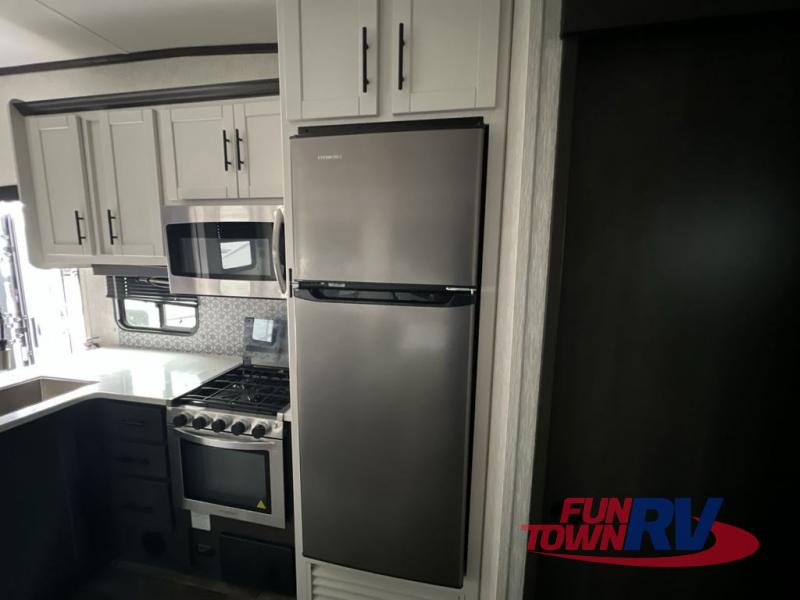 Each one of these CrossRoads RV Cruiser Aire fifth wheels and travel trailers have high end features incorporated into them! Some of these features include a Secure Stance entry step, a pass-through storage with magnetic slam latch doors to keep your gear stored safely, and an electric awning with LED lights to highlight the good times at night. Their construction consists of a total truss roof system, an aerodynamic front cap, plus laminated sidewalls, slide ends and rear wall for added durability. Stay connected where ever you go with the Winegard 360+ WiFi prep, and the HDTV will keep you entertained on those rainy days. The interior includes new cabinets, stainless steel appliances, roller shades, decorative backsplash, and many more comforts!