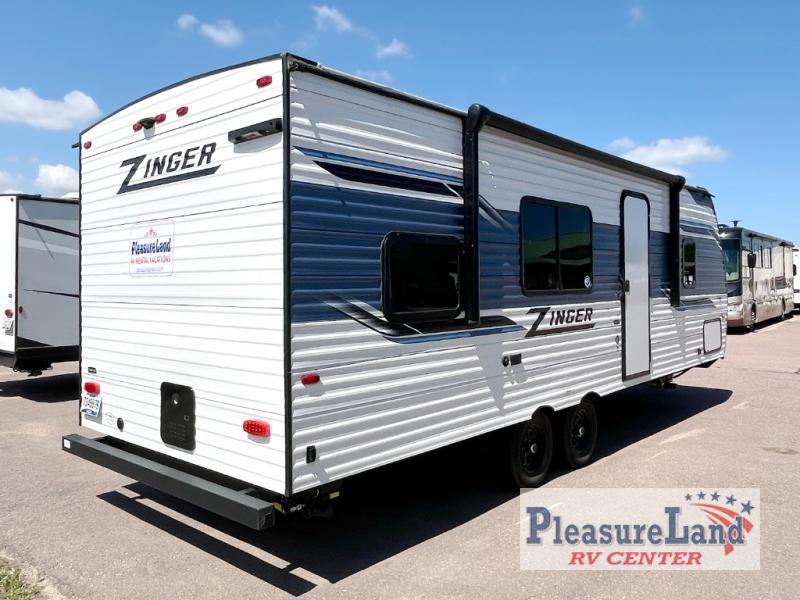 Join the CrossRoads family with a Zinger Lite travel trailer! You'll enjoy an abundance of standard features you would usually find with higher priced travel trailers. Each model features an aerodynamic front end for a more sleek look and better wind resistance when towing. You will appreciate the molded rain gutters with 3" drip spouts, plus Secure Stance entry steps and Keyed-A-Like doors. Having an AM/FM stereo with a Bluetooth soundbar will allow you to listen to your favorite tunes as you camp, and there are outdoor speakers with LED accents if you plan to take the party outdoors. The Zinger Lite also features a 81" interior ceiling height, generous storage space, plus popular options that can be added to further customize your RV. Choose yours today!