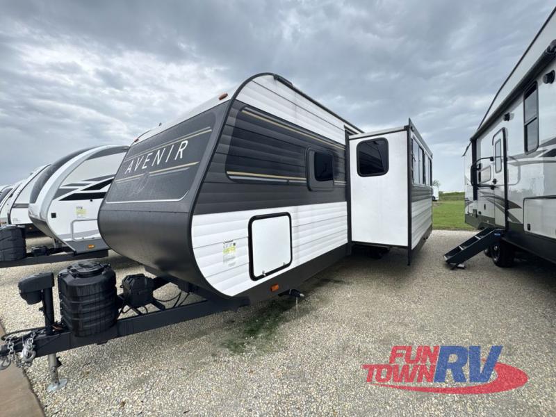 With any Avenir travel trailer by Cruiser RV, you will enjoy affordable luxury at every turn! The smooth corrugated metal exterior and industry leading 3X's full-height cross-members provide a durable foundation, and the Cruiser climate defense heated/enclosed underbelly helps extend your camping season. There are blackout room darkening roller shades in the living room, max storage in the deluxe curated kitchen, and thoughtfully located USB ports and 110V charging outlets to keep your electronics charged. A central control panel lets you easily access your units functions, and the Wi-Fi prep will give you the option to stay connected while you camp. Each model also features a tinted exterior glass door, an outside refrigerator, backup camera and TPMS prep, residential seamless countertops, and many more amenities to make camping trips enjoyable!