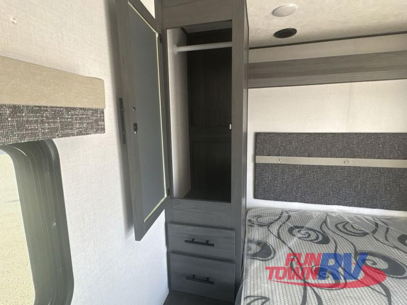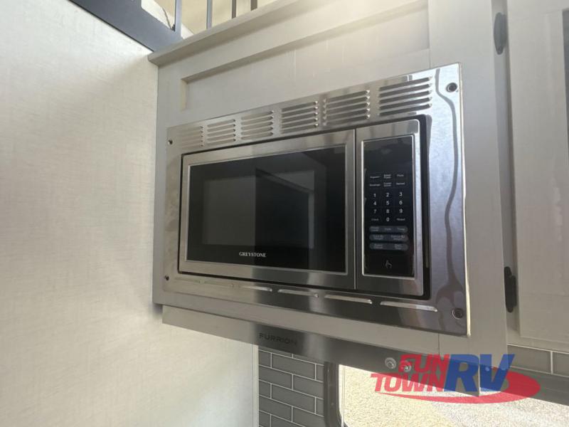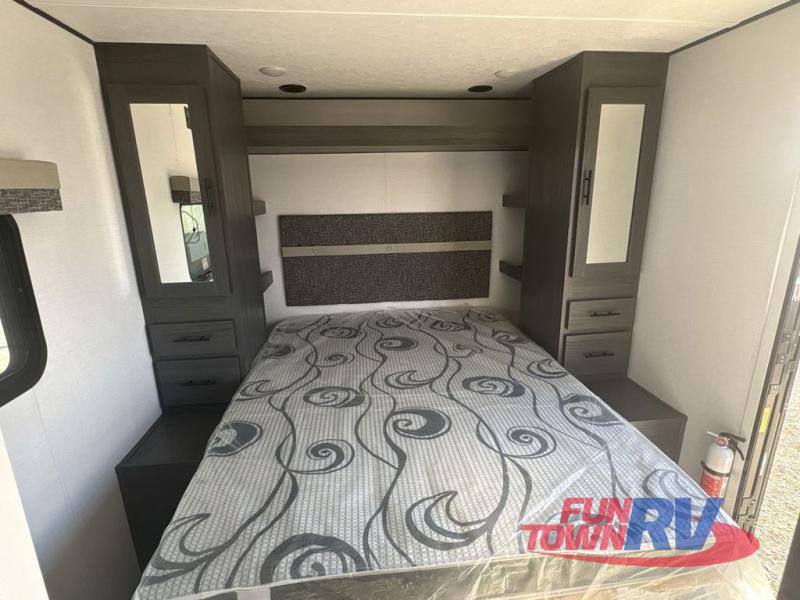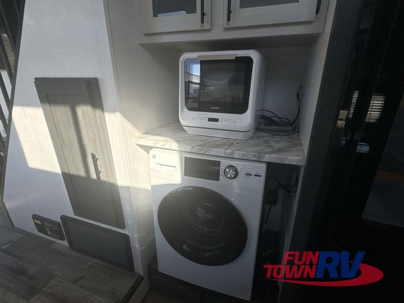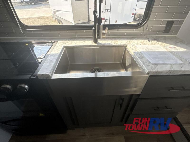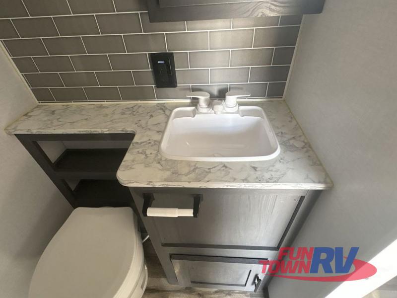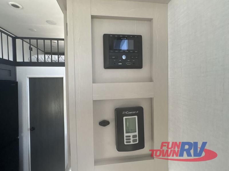 With any Aspen Trail Loft destination trailer, you can enjoy extended stays without the hassle. The crowned roof with seamless TPO, drop I-beam chassis, and 102" wide body are just a few of the durable construction advantages. The high-efficiency 15k BTU A/C cooling system, second 13.5 BTU A/C, and furnace will keep you comfortable year around, and the tankless on-demand water heater is an added convenience you won't want to camp without. Inside, you'll enjoy blackout roller shades, Beauflor flooring, seamless countertops, and no carpet in the main living area for easier cleaning. An HD LED TV and AM/FM/Bluetooth stereo will keep you entertained when the weather rains on your parade, plus there is 4G LTE hotspot + Wi-Fi booster prep if you need the option to work from home!