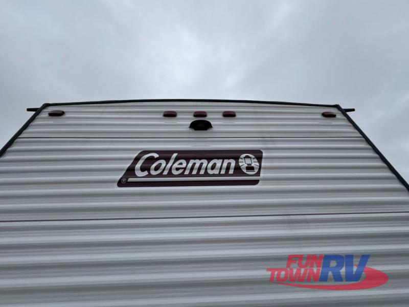 With any Coleman Lantern travel trailer or toy hauler, you will find comfort and convenience at every turn. There are premium steps outside, along with a power jack for easy set up and a power awning where you can visit with campground neighbors. There is also an exterior command center, a friction hinge front entry door, and diamond plate rock guard. The interior is just as accommodating with seamless countertops, upgraded Beauflor flooring, pleated night shades in the living room and bedroom, plus USB ports to keep your electronics charged.